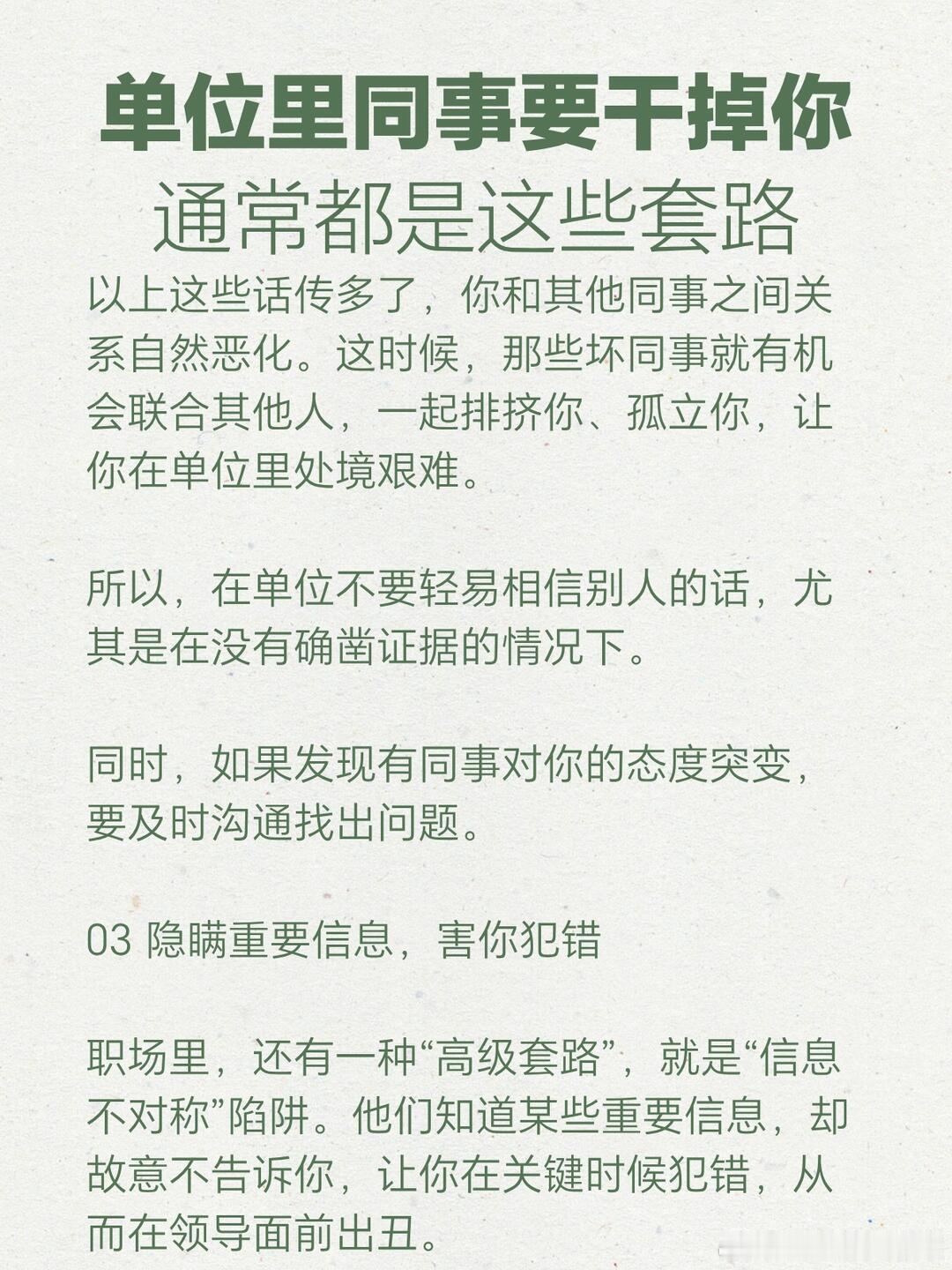 单位里同事的心思,通常都是这些套路。