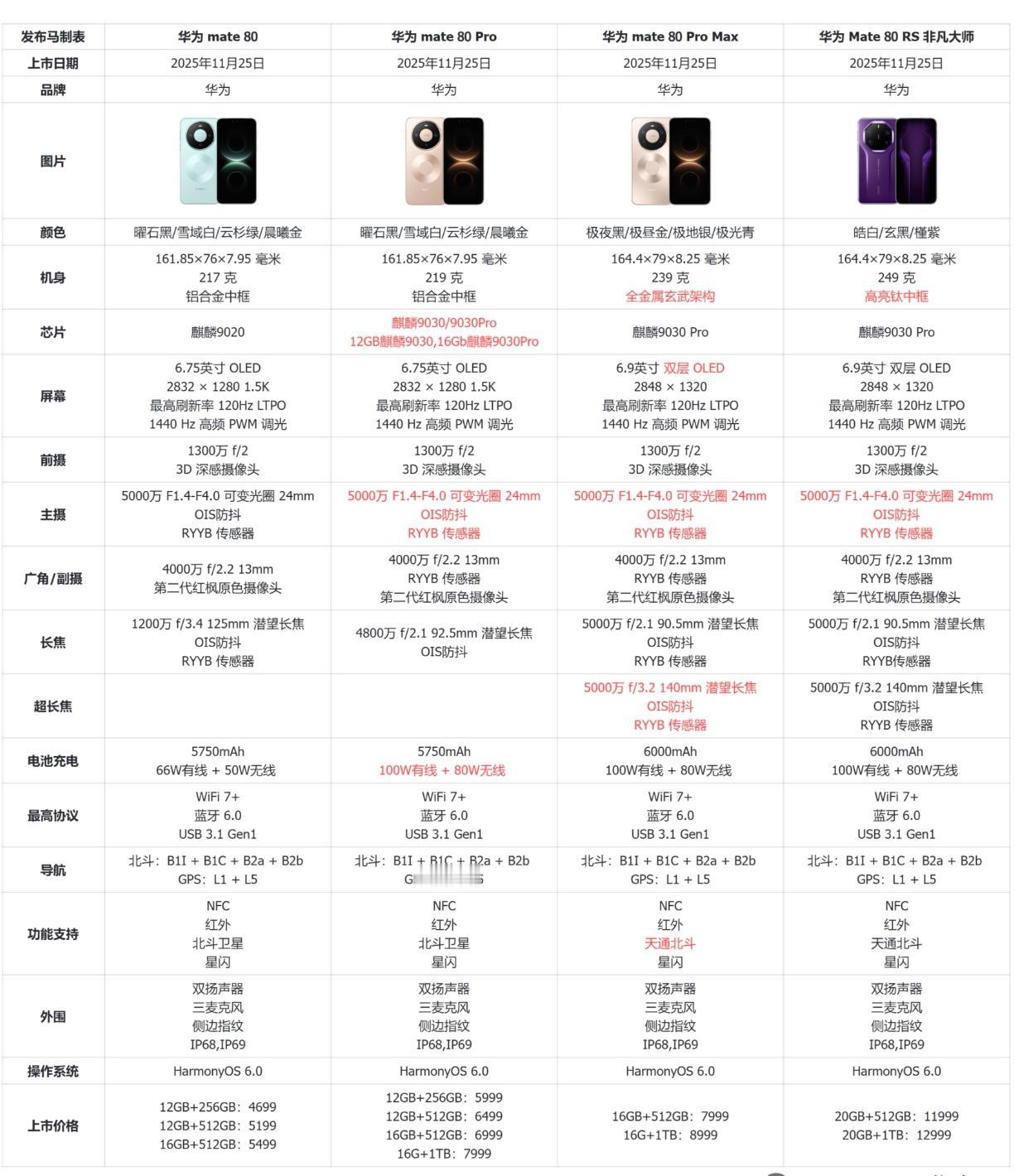 一图搞定,最全的Mate80选购指南!标准版有点杀疯的感觉,价格太炸了,甚至可以无脑入,除了不能尝鲜麒麟9030之外几乎无缺点。华为掀桌子,4000元以上的用户全要抢,燥起来! 拿Pro不如拿Pro Max,芯片性能更强、5摄+长焦拍照提升更大,又能战斗好几年。公司团建拍合照时,领导会点名要你的机子。 Pro Max全金属外壳的手持握感是标准版和Pro版没法比的,还有遍布后壳的天线,📶拉满。屏幕达到6.9英寸、双层oled,全新体验。 专门用于刺激Mate40 Pro为首的那些老屁股们换机,他们已经顶不住了。 何况还有最高1000红包的日日新60天签到活动,颇具可玩性,几个同事每天比红包大小,也是一大乐子!