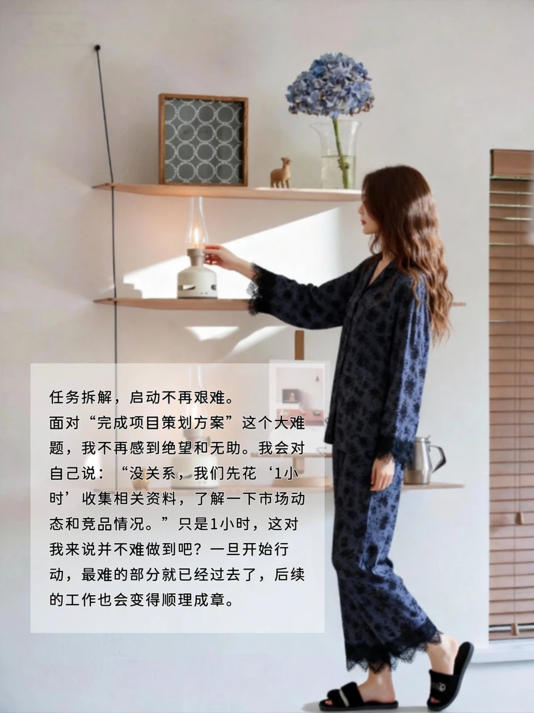 面对“完成项目策划方案”这个大难题,我不再感到绝望和无助。我会对自己说:“没关系,我们先花1小时收集相关资料,了解一下市场动态和竞品情况。”只是1小时,这对我来说并不难做到吧?一旦开始行动,最难的部分就已经过去了,后续的工作也会变得顺理成章。