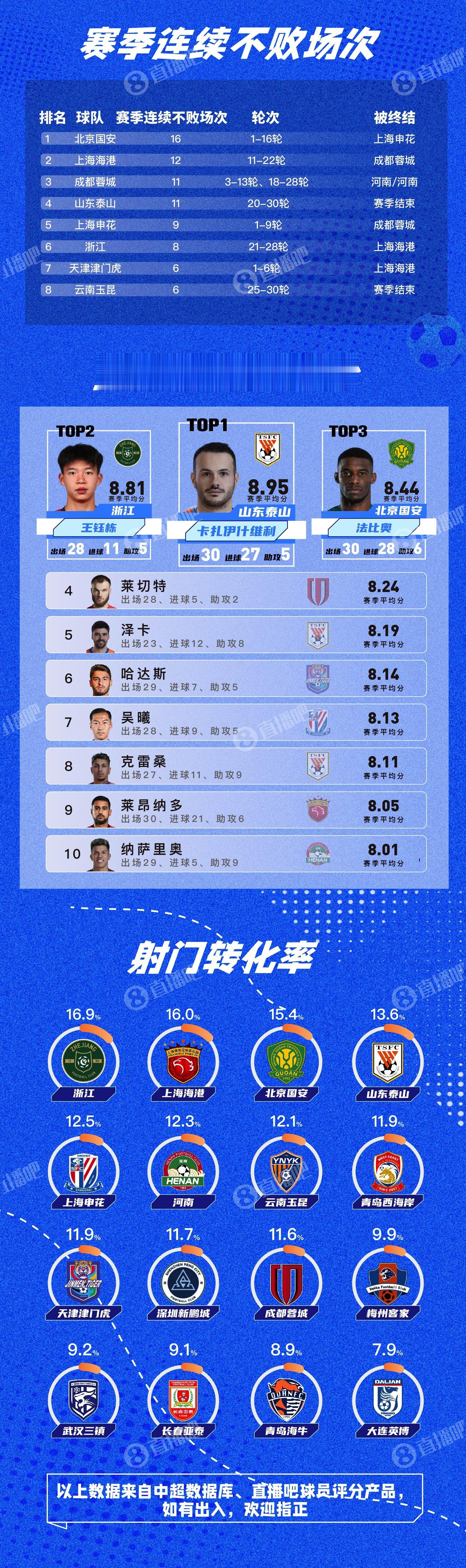 7张图全面回顾本赛季中超从球场上座率到球员细节数据都包含了,很细致并且可视化非常不错的中超总结,一看就是用心制作。