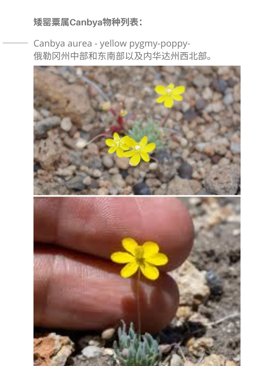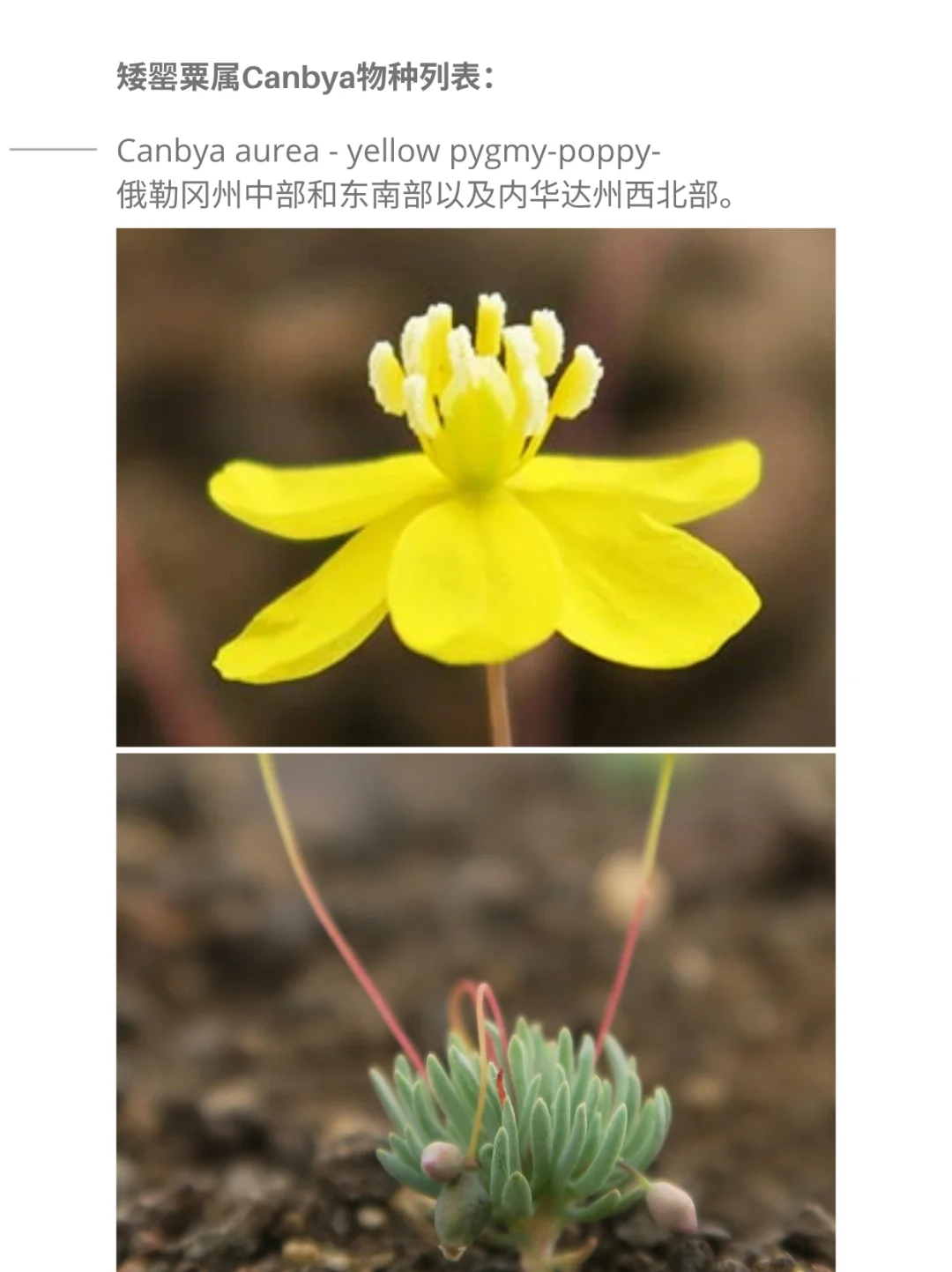 Canbya aurea - yellow pygmy-poppy-俄勒冈州中部和东南部以及内华达州西北部。