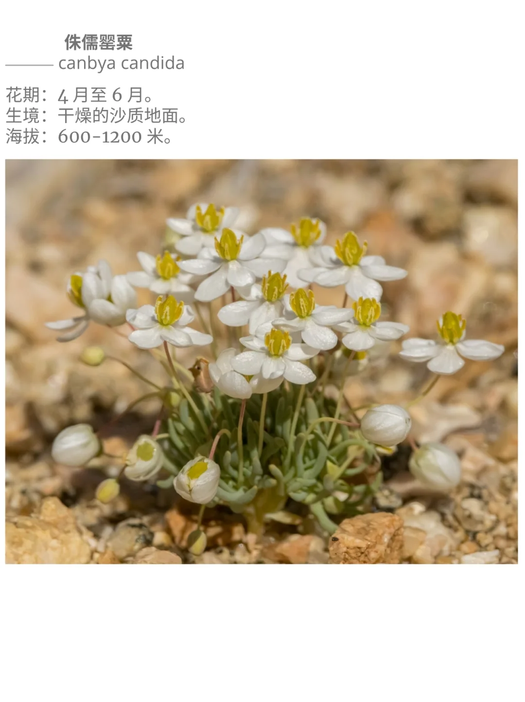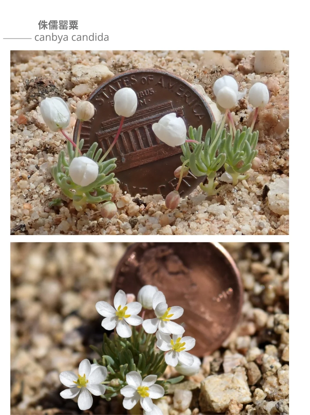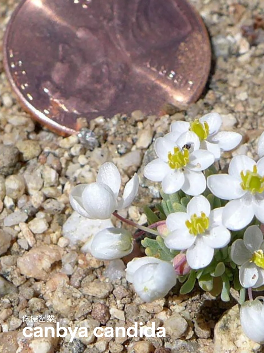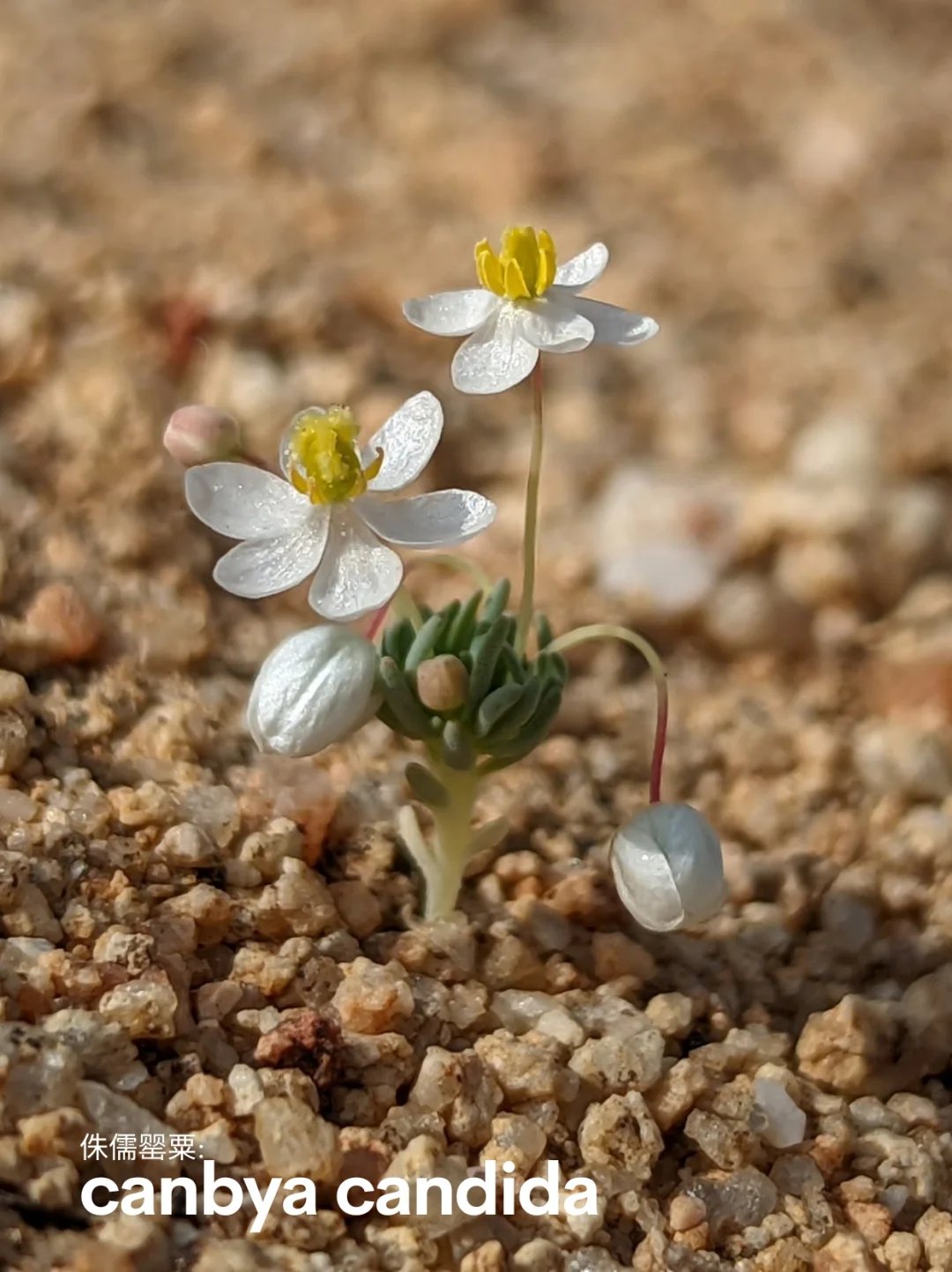 Canbya candida - pygmy poppy, white pygmy poppy-南加州莫哈韦沙漠西部。