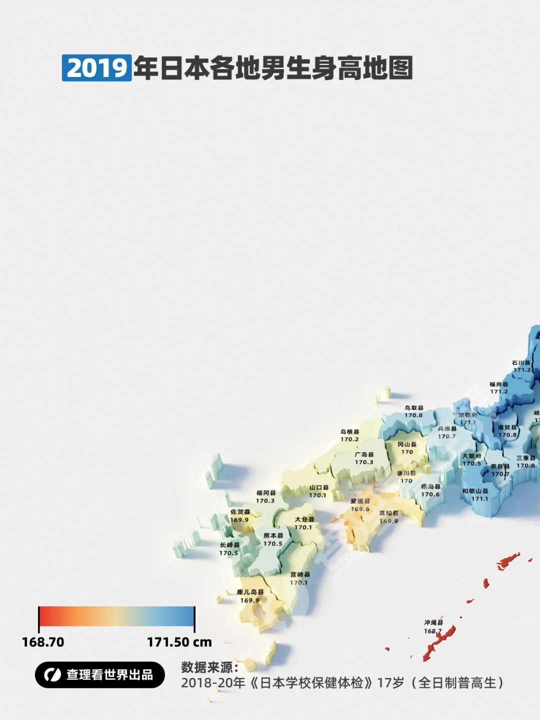 数据来源:2018-2020年《日本学校保健体检》17岁全日制普高生 ★原创地图内容谢绝转载★