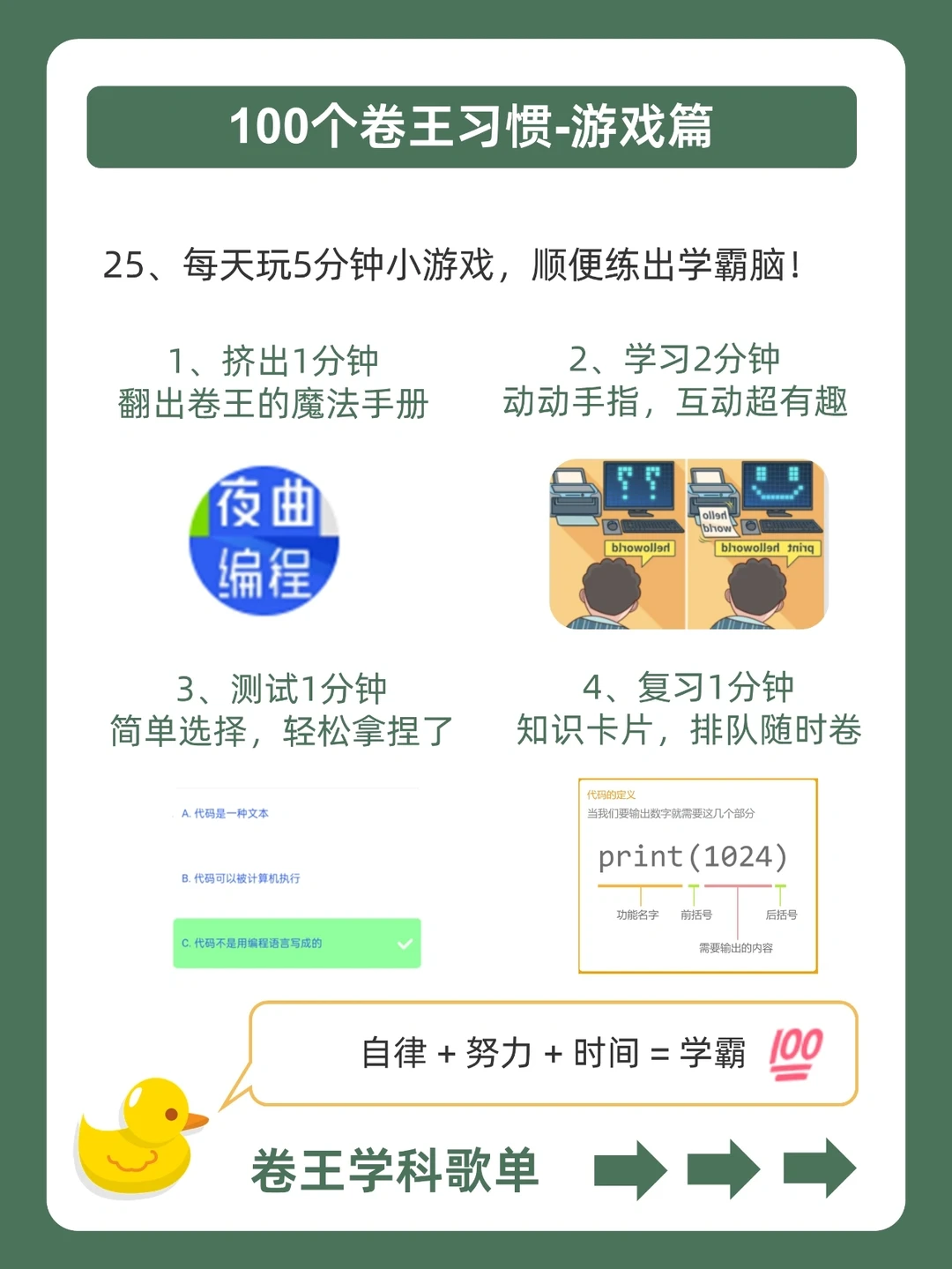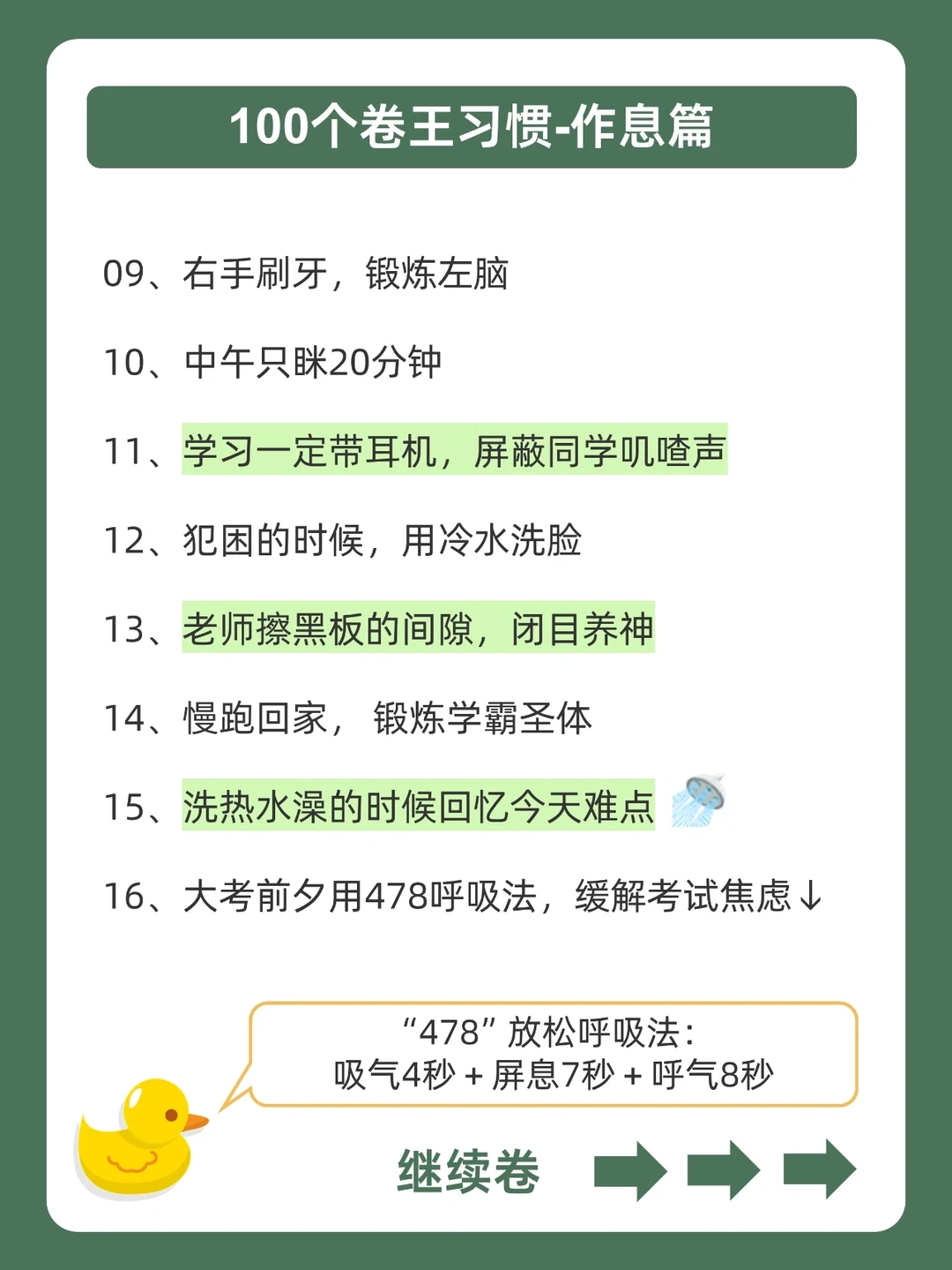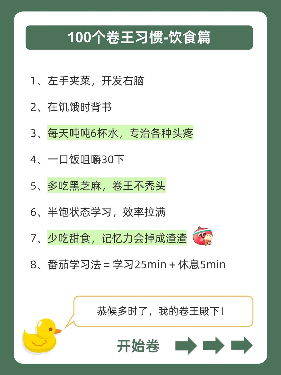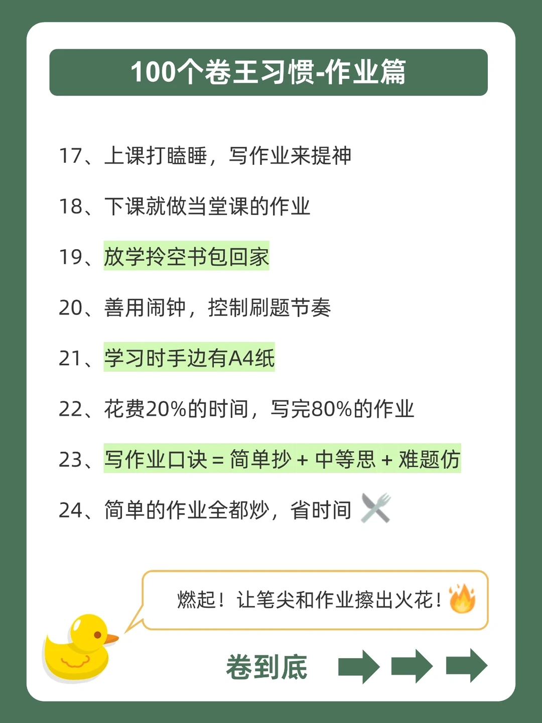 . [赞R]帮你逆袭学霸,是小黄的责任❗ . [向右R]有同学特想成为卷王,却不知道该从哪些小事下手![石化R] . [飞吻R]小黄学长这么宠粉,已经系统整理好了各个维度的卷王习惯![哇R] . 今天就来分享,100个卷王习惯,都在上面的图,看完就会用!从此学习上瘾,逆袭学霸。[赞R] . ️[太阳R]我是小黄,持续更新优质学习笔记,陪宝子们逆袭学霸,叱咤校园![赞R]