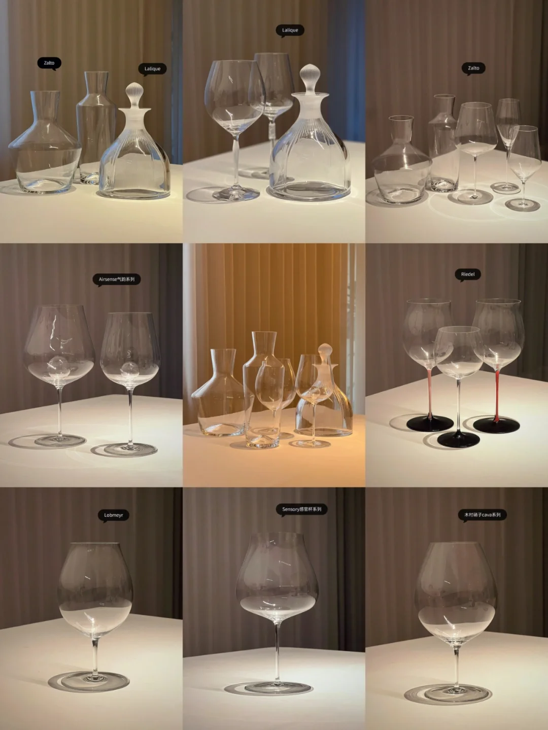 1⃣️波尔多杯(红酒杯):波尔多杯设计是为了突出赤霞珠和梅洛两种葡萄品种酿造的葡萄酒的特点。在饮用单宁较强的赤霞珠的时候,其杯缘可以将酒带到舌头的中段,减少单宁直接与口腔接触,从而柔化其单宁,又让舌头能完整的感受到酒液带来的触觉体验。酒肚较勃艮第杯小,以便帮助赤霞珠强化堆叠香气;