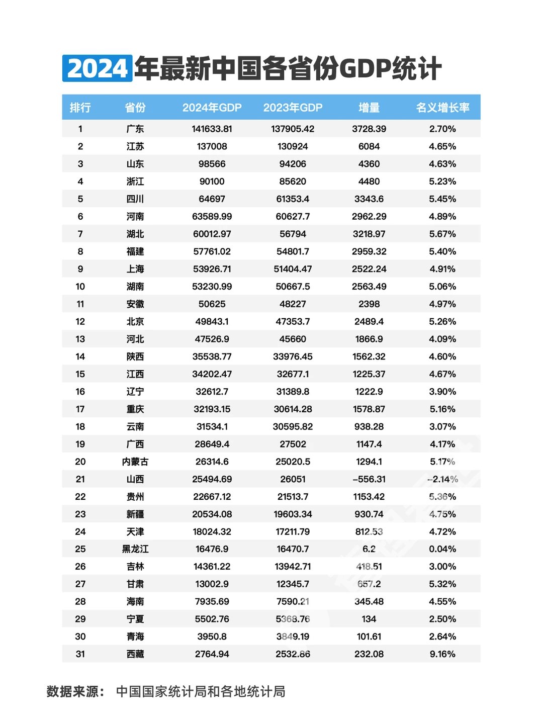 2024年最新各省GDP全部公布