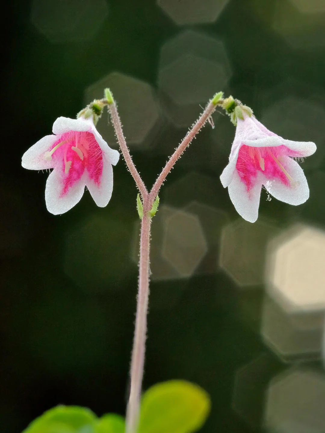 🌲❄️【雪原上的双生铃铛 】❄️🌲\n▫️𝘕𝘈𝘔𝘌\n「北极花」𝘓𝘪𝘯𝘯𝘢𝘦𝘢 𝘣𝘰𝘳𝘦𝘢𝘭𝘪𝘴\n▫️𝘍𝘓𝘖𝘞𝘌𝘙 𝘚𝘏𝘖𝘞\n✨ 玲珑钟形花朵成对绽放,花瓣薄如蝉翼\n✨ 纯净白瓣晕染淡粉,花心缀金黄蜜腺\n✨ 常绿藤茎匍匐生长,小叶对生如翡翠圆盾\n▫️𝘏𝘈𝘉𝘐𝘛𝘈𝘛\n🌍 环北极圈\"冻土带精灵\":横跨北欧/西伯利亚/阿拉斯加/加拿大\n❄️ 独占极地生态位:针叶林下层/苔原岩石缝/驯鹿苔丛林\n🌫️ 晨雾中散发肉桂幽香,极昼时节盛放(6-8月)\n▫️𝘎𝘈𝘙𝘋𝘌𝘕 𝘛𝘐𝘗𝘚\n⛰️ 栽培介质:模拟原生环境!泥炭土+松针+火山岩(pH4.5-6.0)\n🌥️ 光温玄机:耐-40℃严寒却怕30℃高温!夏季必需遮阴+冰雾降温\n💧 水分魔法:保持苔藓植料湿润但忌积水!建议红陶盆种植\n兽花马博物馆MONSTRE兽花马武汉花店每日一花兽花马花艺培训鲜花分享花艺美学神奇植物园艺