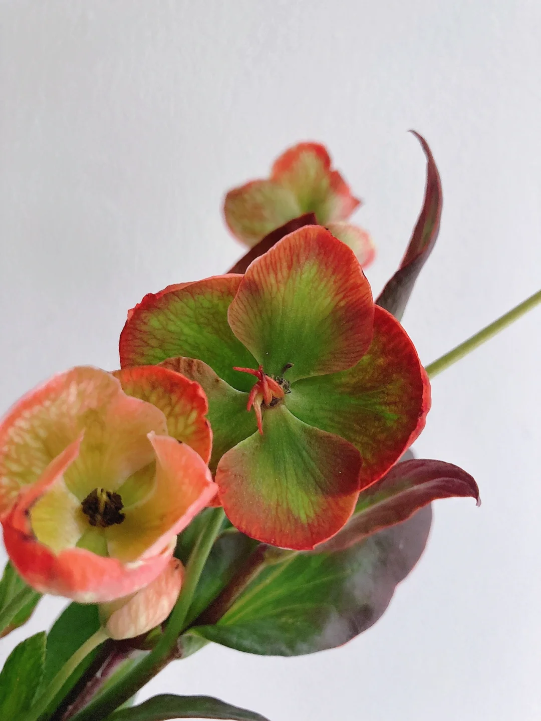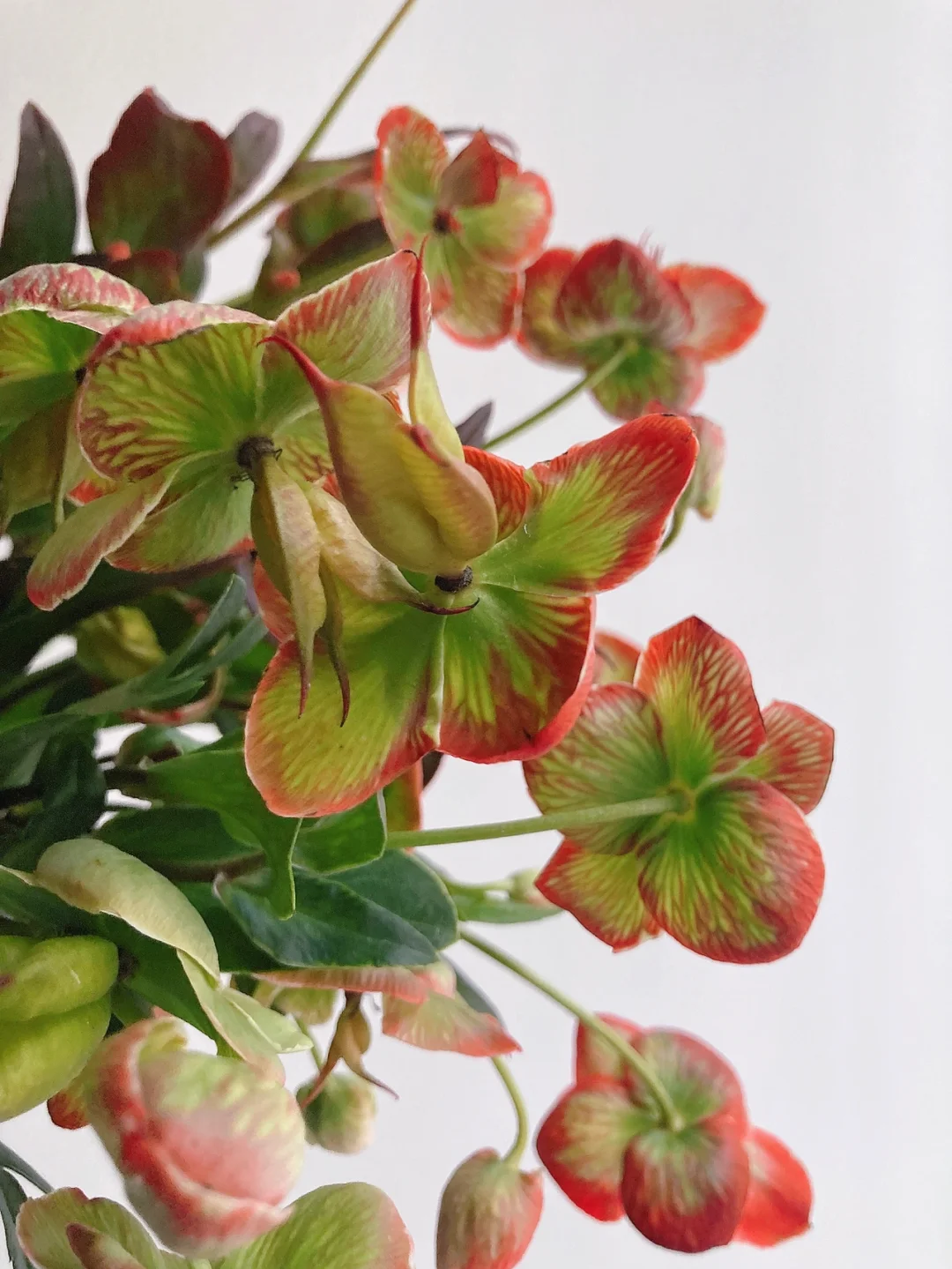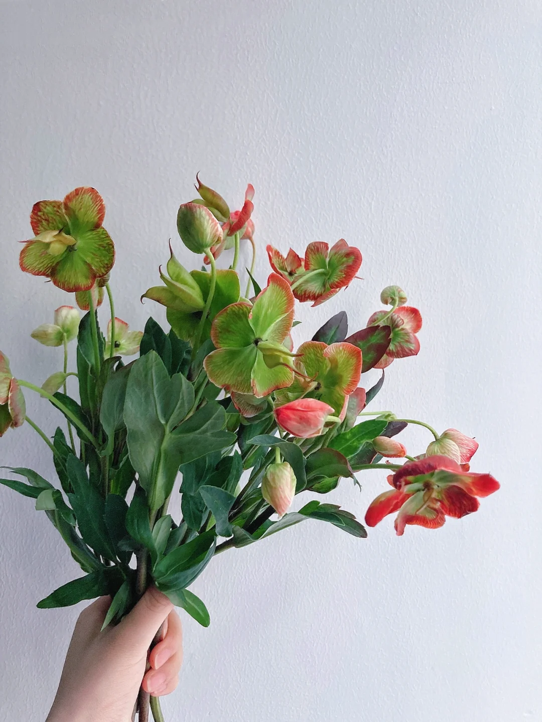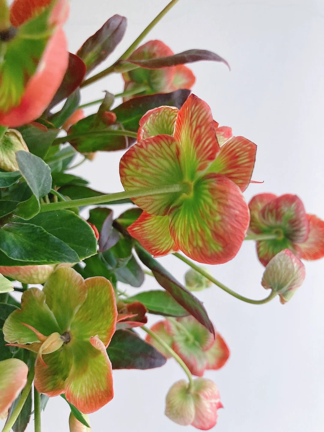 🟢🟢特点:这一款是人工吸色的菟葵,呈现红绿色,和“圣诞玫瑰”这个名字更配了,菟葵的绿色在自然界中是不可多得的花色,加上艳丽的红,更为特别了。
