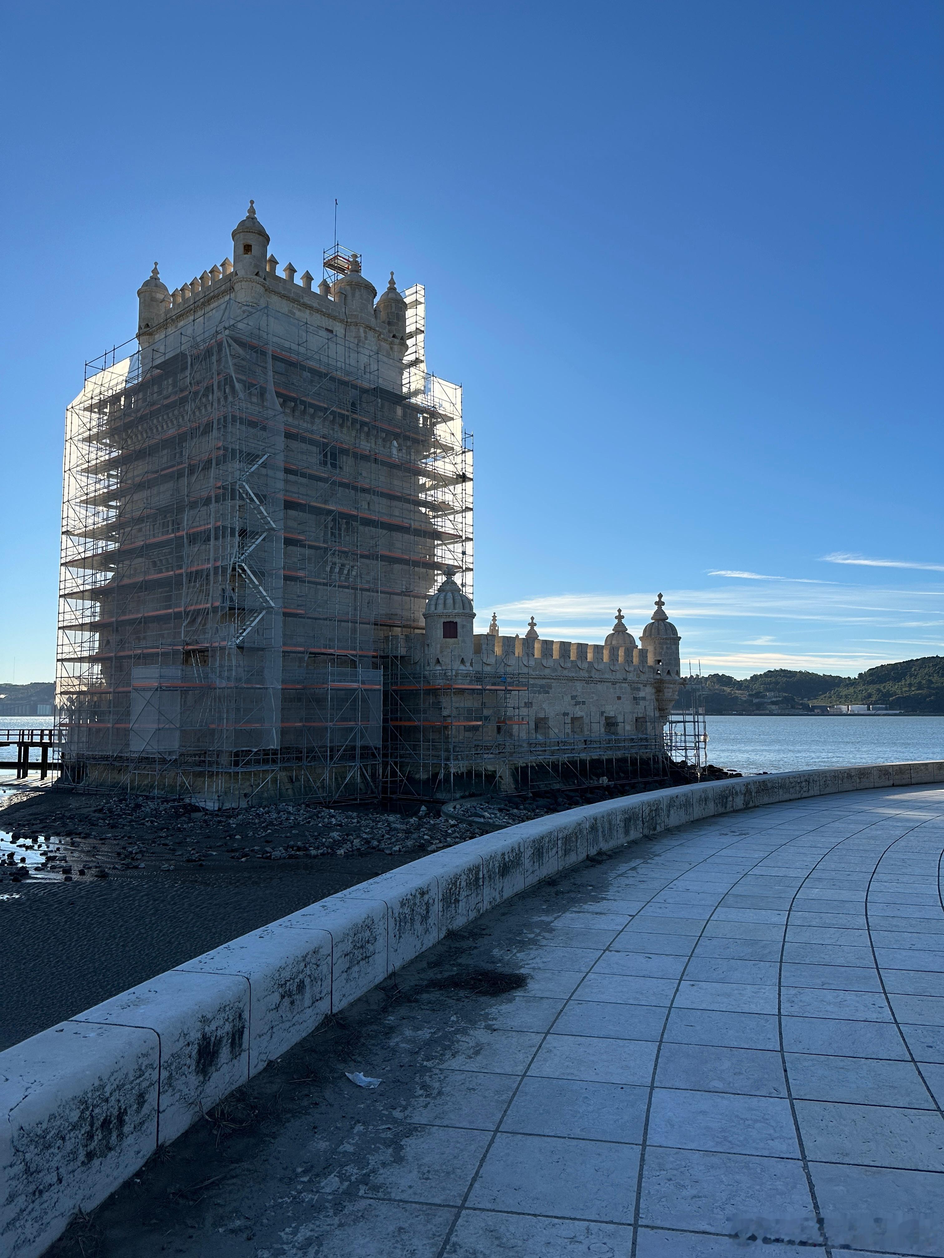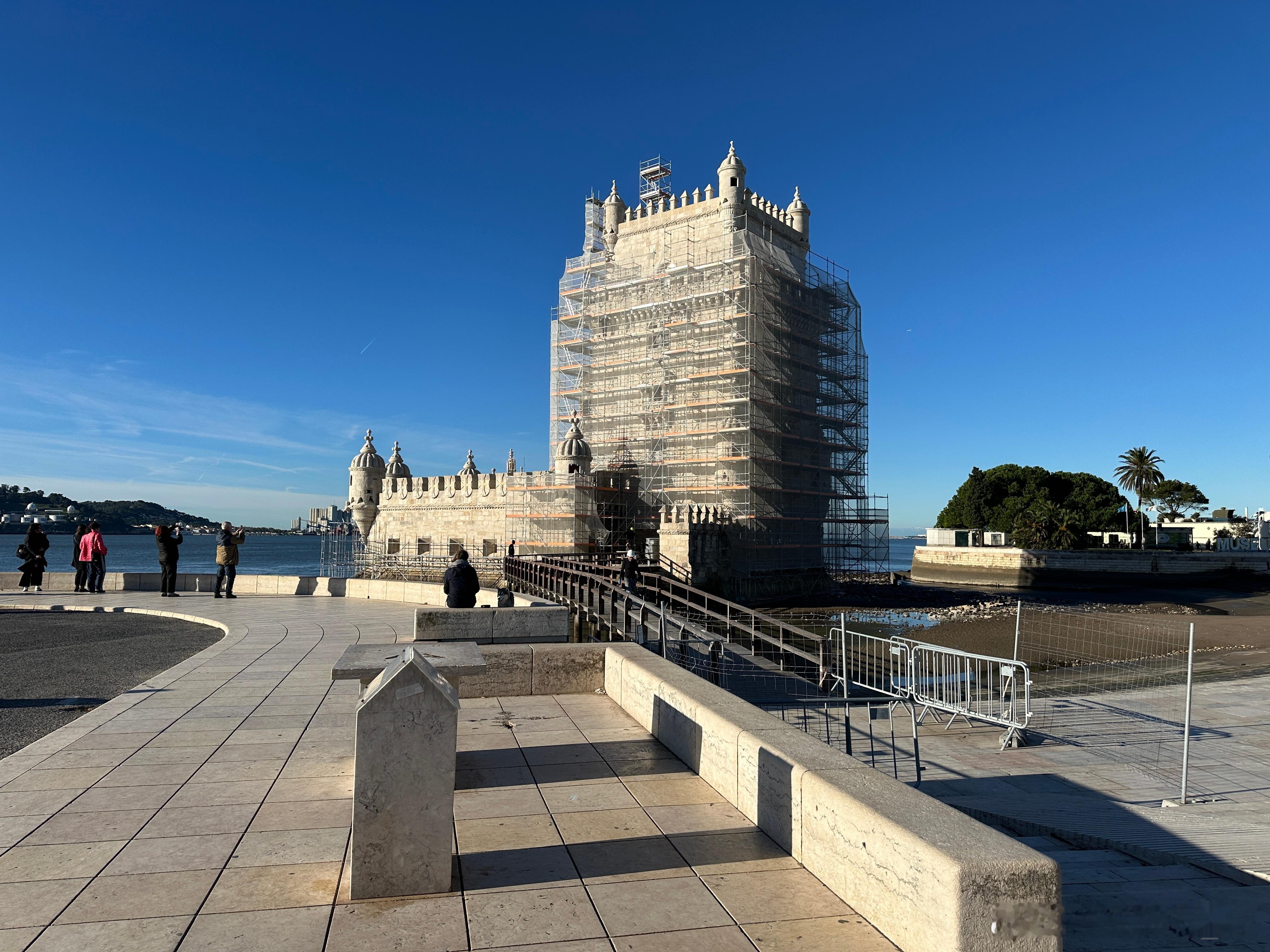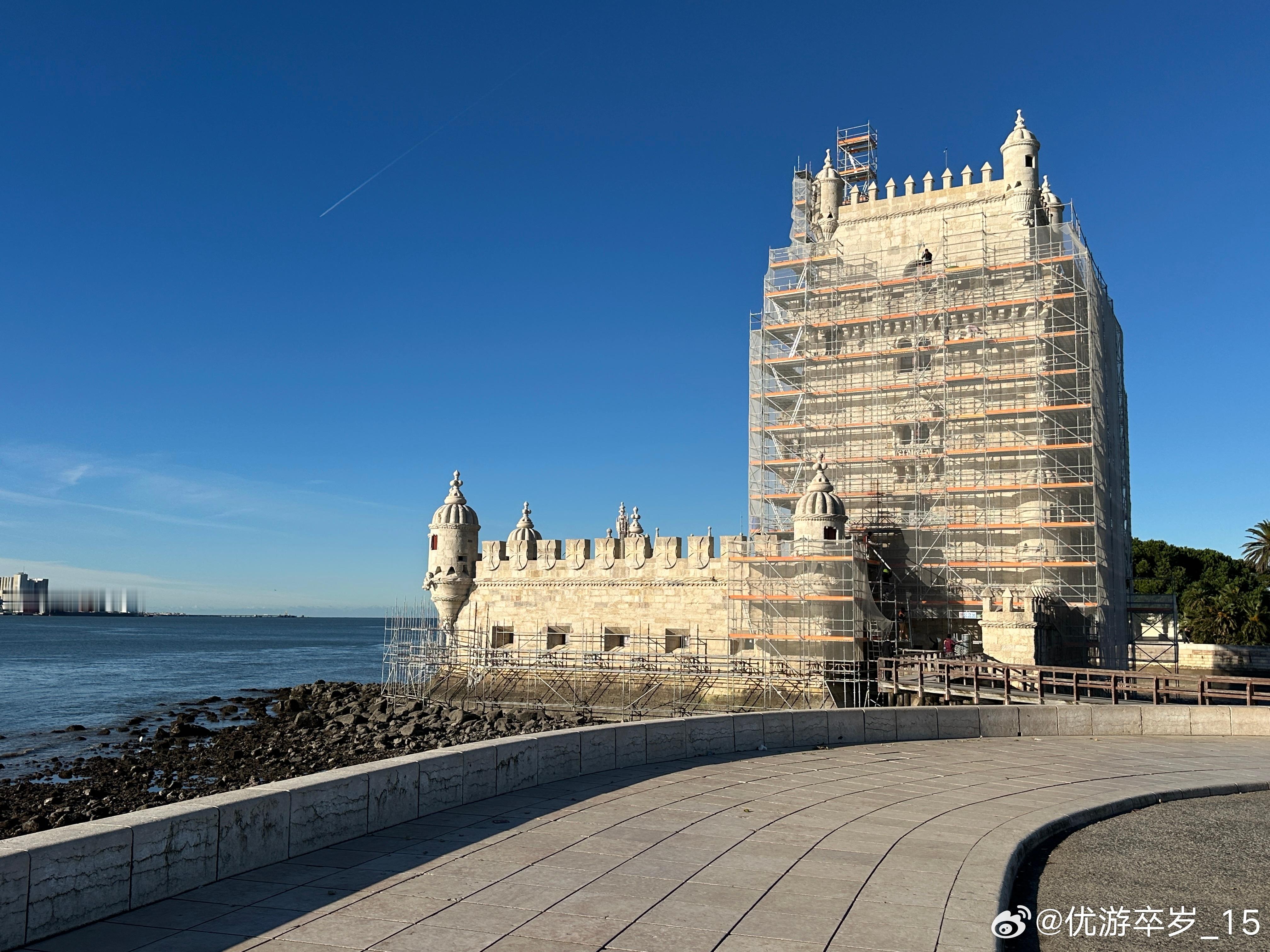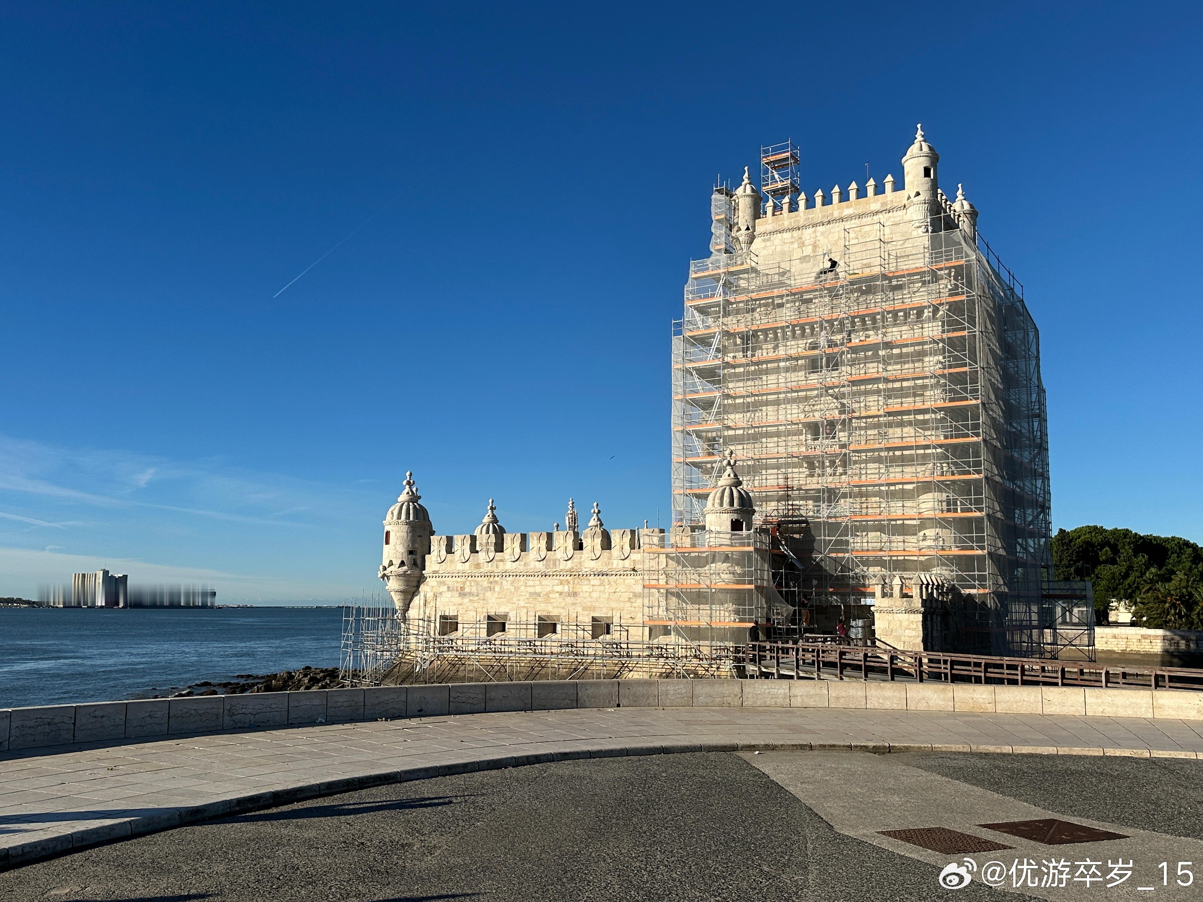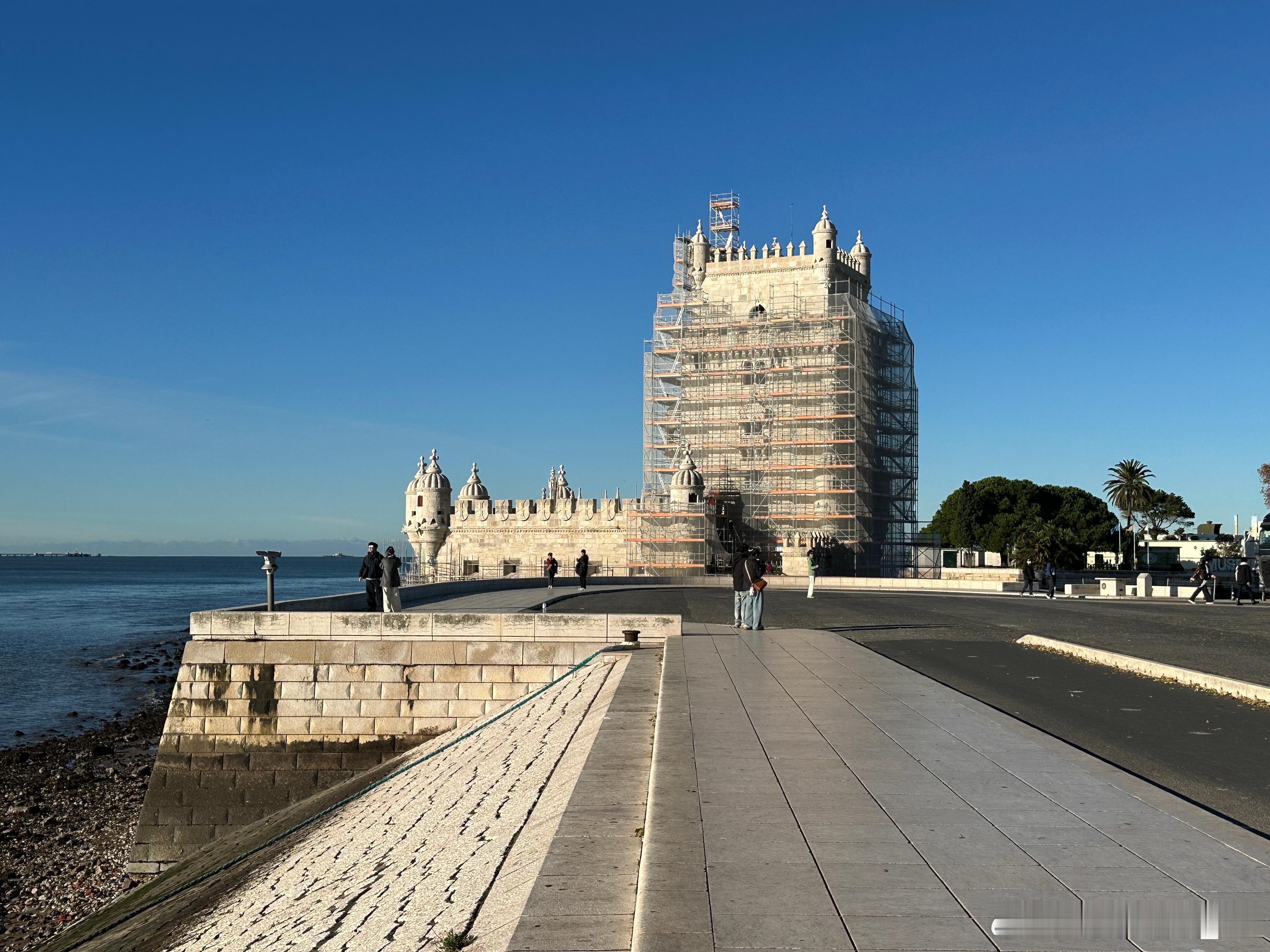 【世界遗产】位于特茹河北岸的贝伦塔是里斯本丰富海事遗产和葡萄牙发现时代的持久象征。这座标志性的堡垒建于1514年到1519年之间,由曼努埃尔一世国王下令建造,作为塔霍河口的防御要塞,以保护里斯本港口免受潜在的入侵威胁。同时贝伦塔也是很多航海探险家远征的出发点,是葡萄牙发现时代的纪念碑。几个世纪以来,贝伦塔的角色逐渐从军事要塞演变为仪式性的门楣和海关检查点。在16世纪,它还被用作政治犯的监狱和军火库。这座曼努埃尔式的建筑正在进行维修,无缘亲见其精细的建筑装饰,例如扭绳、浑天仪、基督骑士团十字等海事符号。