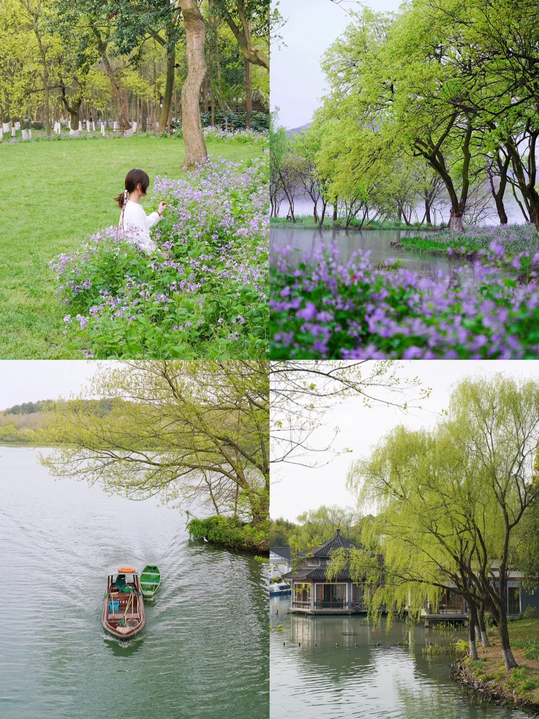 2⃣️湖滨坐手摇船,1h后到对岸杨公堤下船,正前方便是茅家埠,旁边就是著名的江南园林——郭庄,以及杭州花圃,都非常值得一逛!