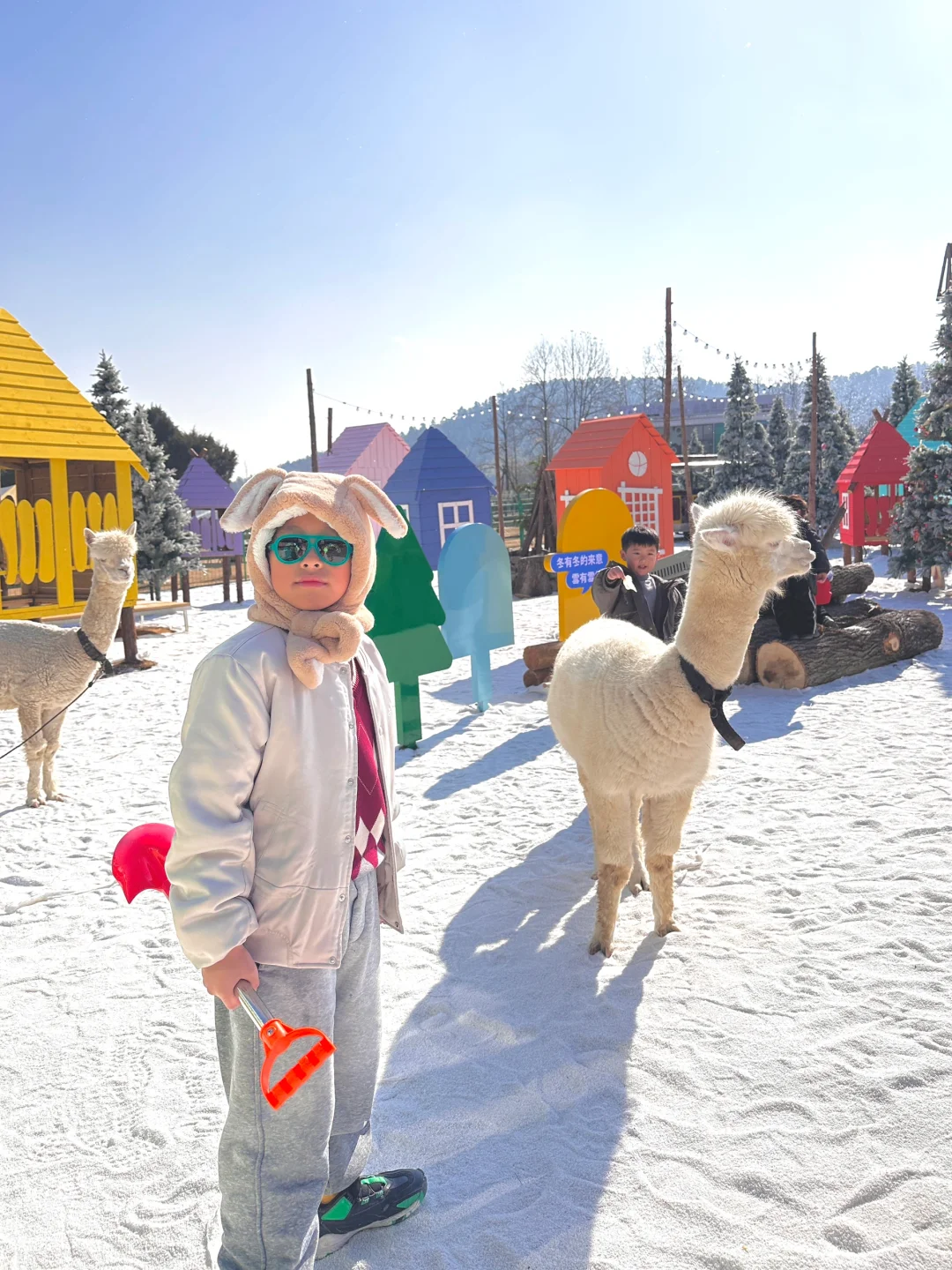 别忘了去旁边的雪国列车🚂、mini雪乡、雪景松树林,和雪地羊驼拍合影,不用怕它,很亲人的噢。