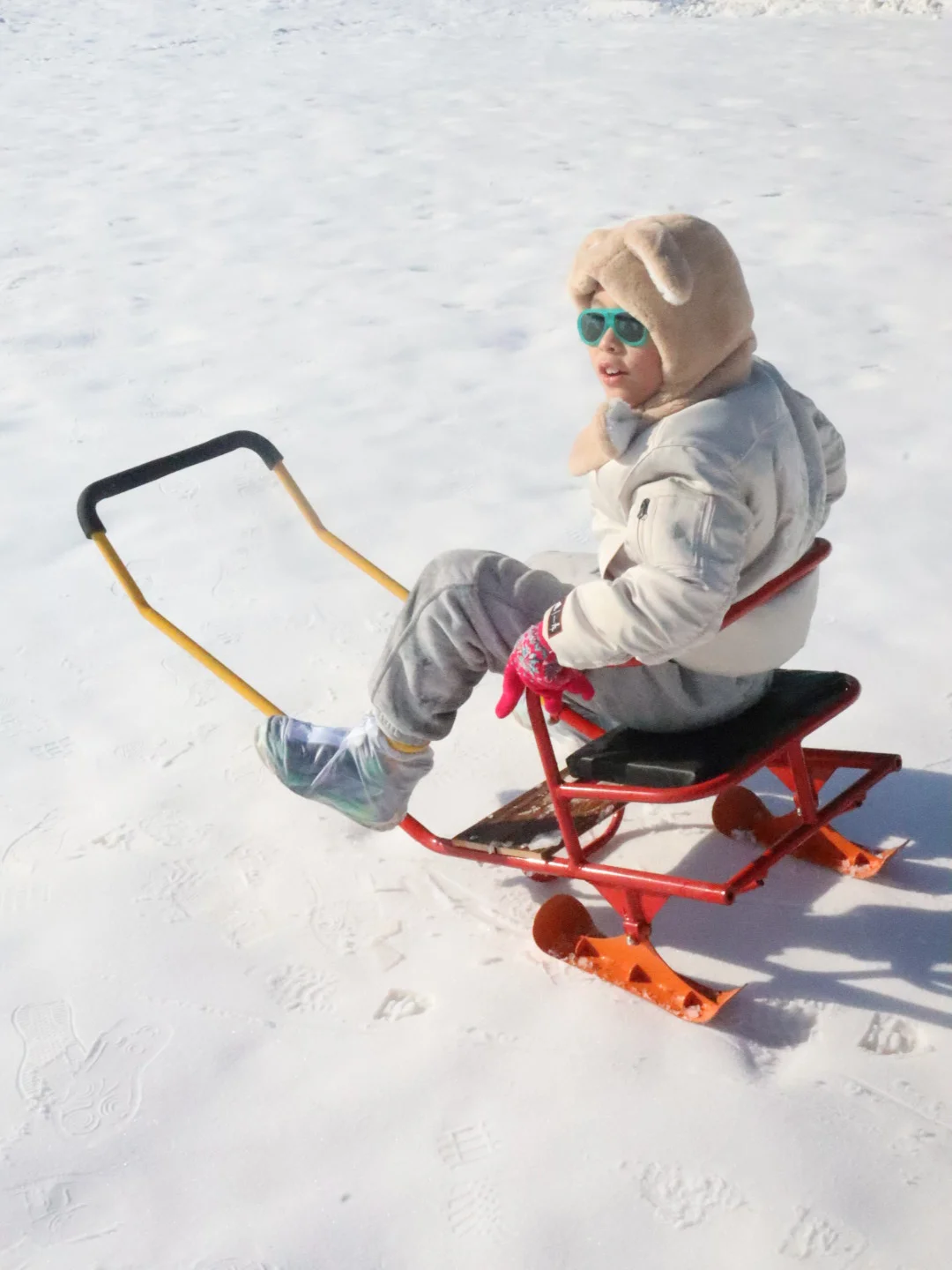 开门就冲雪国,游乐设施很多:✅雪地甜甜圈、✅大章鱼、✅滑雪橇、✅小马摇摇乐、✅海豚爬犁…,而且还是🆓的噢,大朋友,小朋友都可以玩,小朋友可以自备铲子和夹雪球玩具。