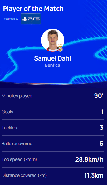 赛后,他也被欧足联技术小组评选为本场比赛的全场最佳球员。