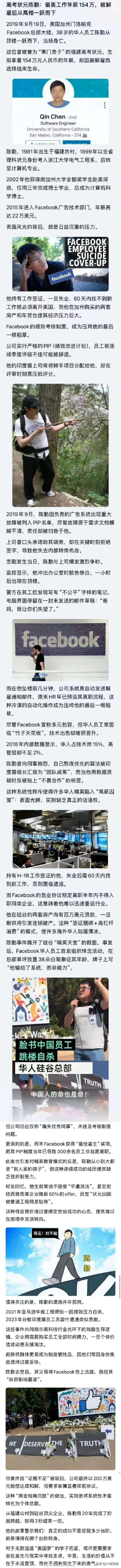 福建高考理科状元在美国被裁员后,选择跳楼自杀,这个福建的高考状元,在浙大毕业后,去美国脸书工作,年薪高达22万美元,还买了豪宅,把家人接到美国定居,结果被印度主管打差评后,被公司裁员,然后他就选择跳楼自杀了!后面传出原因是说他因为拿的是工作签证,如果被裁员后,在两个月内找不到工作,就要离开美国,因为他在美国有两个房贷和还有车贷,所以压力太大,就跳楼了!挺令人唏嘘的,有时候人还是不要做超过自己能力范围的事情,如果他没有背负这么多房贷车贷,可能也不会走极端,裁员了,就继续找工作呗,美国的科技公司也很冷漠,这样逼死了一个状元人才!