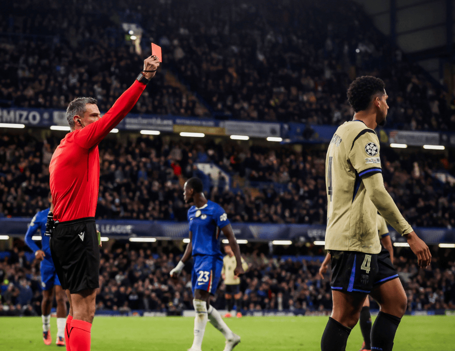 虎扑11月26日讯欧冠联赛阶段,巴萨客场挑战切尔西,阿劳霍在上半场比赛两黄变一红离场。