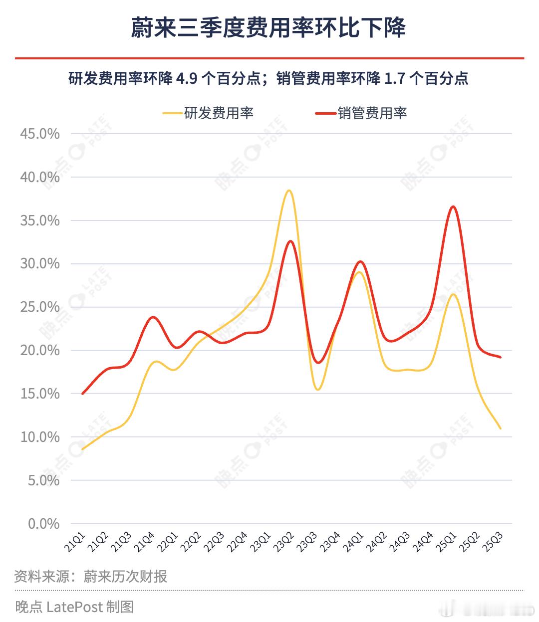 【蔚来三季度经调整净亏损 27.4 亿元,李斌坚持四季度盈利目标】今年三季度,蔚来净亏损 34.8 亿元,同比收窄约三成;经调整净亏损环比改善 33.7%、至 27.4 亿元。虽然四季度新车销量指引较上季度下调约 3 万辆,但蔚来董事长兼 CEO 李斌在业绩会上说,仍然有信心在今年四季度实现盈利。他给出的理由主要是:蔚来三季度整车毛利率已达 14.7%,并有望在四季度进一步提升至 18% 左右。CFO 曲玉补充,三季度,ES6 和 EC6 的毛利率均已达到或超过 25%;ET5、ET5T 和乐道 L90 的毛利率在 15%-20% 之间;三代 ES8 的毛利率也达到 20%。由于 ES8 等高售价车型的销量占比将环比提升,预计四季度整车毛利率将继续改善。7 至 9 月,蔚来连续推出乐道 L90、三代 ES8 两款大三排纯电 SUV,带动销量快速增长。10 月份这两款新车的合计销量占比已达 45.6%。李斌说,三代 ES8 目前仍有大量待交付订单;乐道 L90 订单虽在 10 月中旬后受到置换补贴退坡影响,但其对整体毛利的冲击仍在可控范围内。他认为,基于目前的产品布局规划,蔚来有望在明年上半年的某个月份实现月销 5 万辆。李斌还提出,蔚来明年的经营目标是在 non-GAAP(非通用会计准则)口径下实现全年盈亏平衡。他列举了一组数据来佐证对纯电市场的乐观判断:今年三季度,在国内乘用车市场,纯电车型销量同比增长 26%,增程和插混分别同比下滑 12% 和 7%;前三季度,纯电销量同比增长 33%,增程仅增长 3%;10 月纯电销量同比增长 13%,增程则同比下滑。在蔚来更熟悉的售价 30 万元以上乘用车市场,纯电渗透率已从 2024 年全年的 12% 上升至今年三季度的 18%。今年前三季度,纯电销量同比增长 33%,增程同比下滑 10%。“今年以来,高端市场的纯电心智已经逐步开始形成。” 李斌总结。不过,市场趋势总是在动态变化,消费者的选择最终还是由产品力决定。明年预计有多款搭载大容量电池的增程车型上市,其纯电续航里程将大幅提升,甚至接近同级别纯电车型水平。届时增程车型能否重新获得消费者青睐仍存变数,这也将对一直以来坚持纯电路线的蔚来构成新的考验。