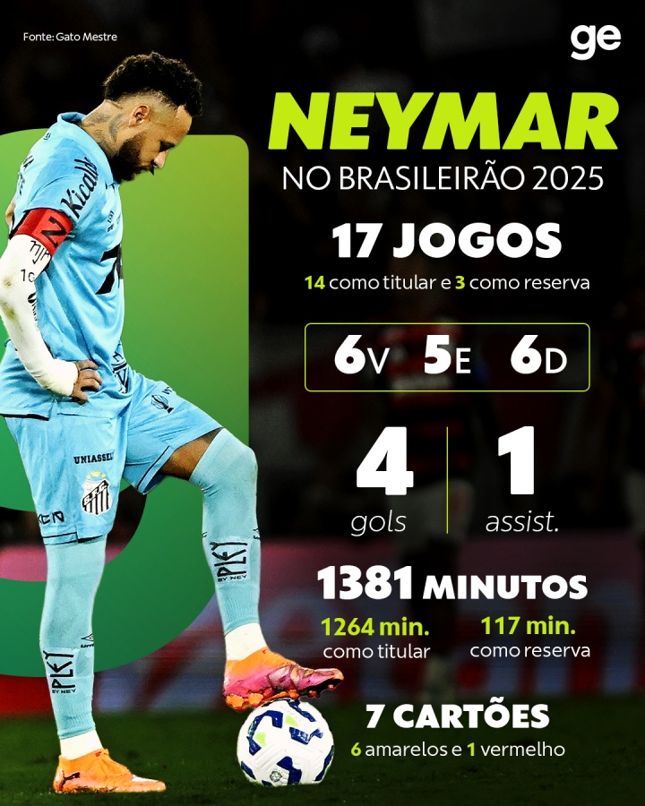 在预计2025年报销后,两年来内马尔缺席的天数超过600天。内马尔自回归桑托斯后,17场巴甲进4球,拿到5张黄牌,一次两黄变一红。