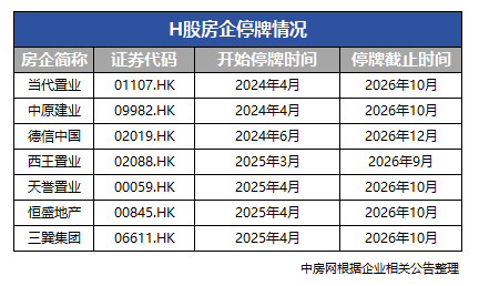 截至目前,H股仍有8家内地房企处于停牌状态,退市风险持续高悬。其中,当代置业、中原建业的停牌时间已届满18个月,根据港交所相关规则,已触及强制退市条件,退市结局已定,仅待交易所官方公告落地。德信中国的停牌期限将于2025年12月到期,若届时仍未能满足港交所复牌指引要求,也将面临退市风险。