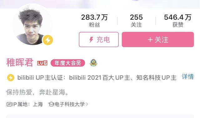彭志辉另一个广为人知的身份是科技圈知名KOL、B站百大UP主之一“稚晖君”,也有网友称呼他为“野生钢铁侠”。截至发稿,稚晖君的B站粉丝为283.7万。