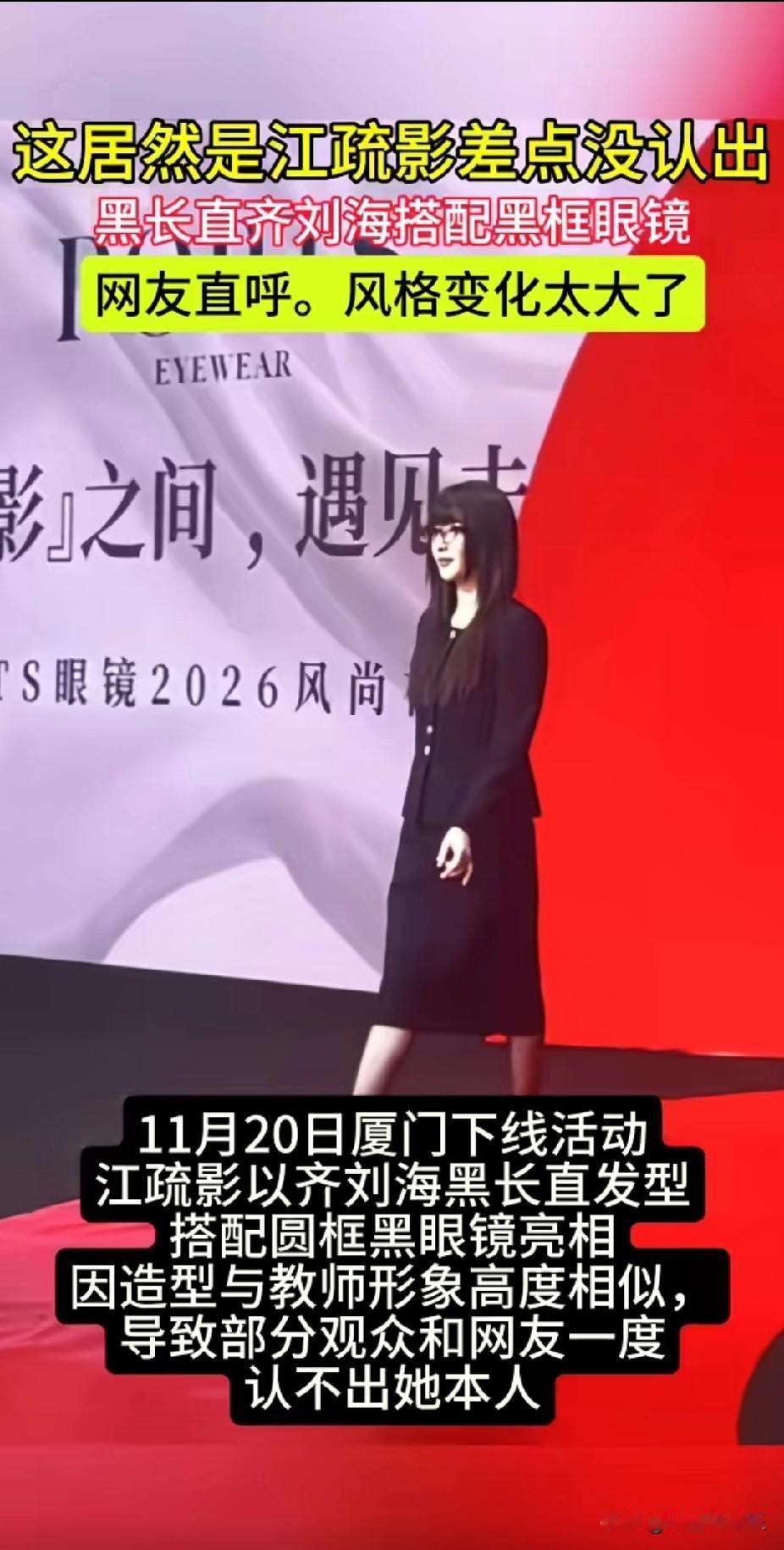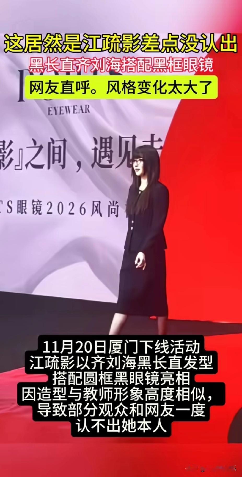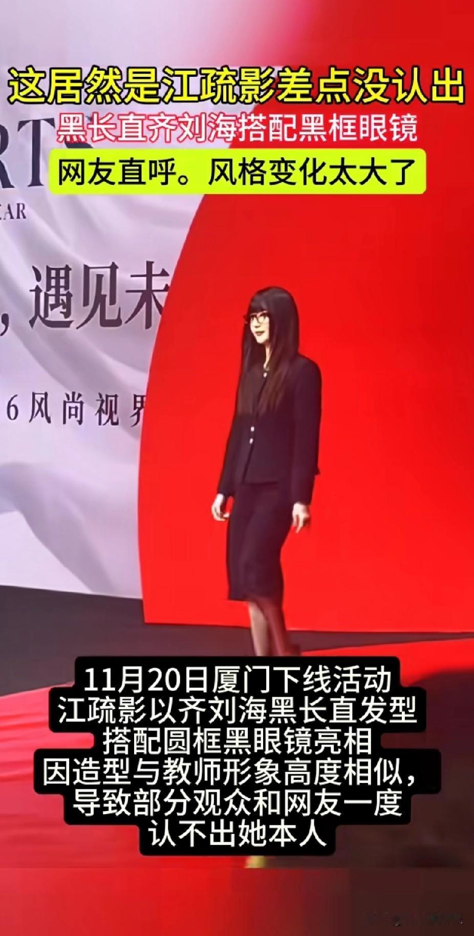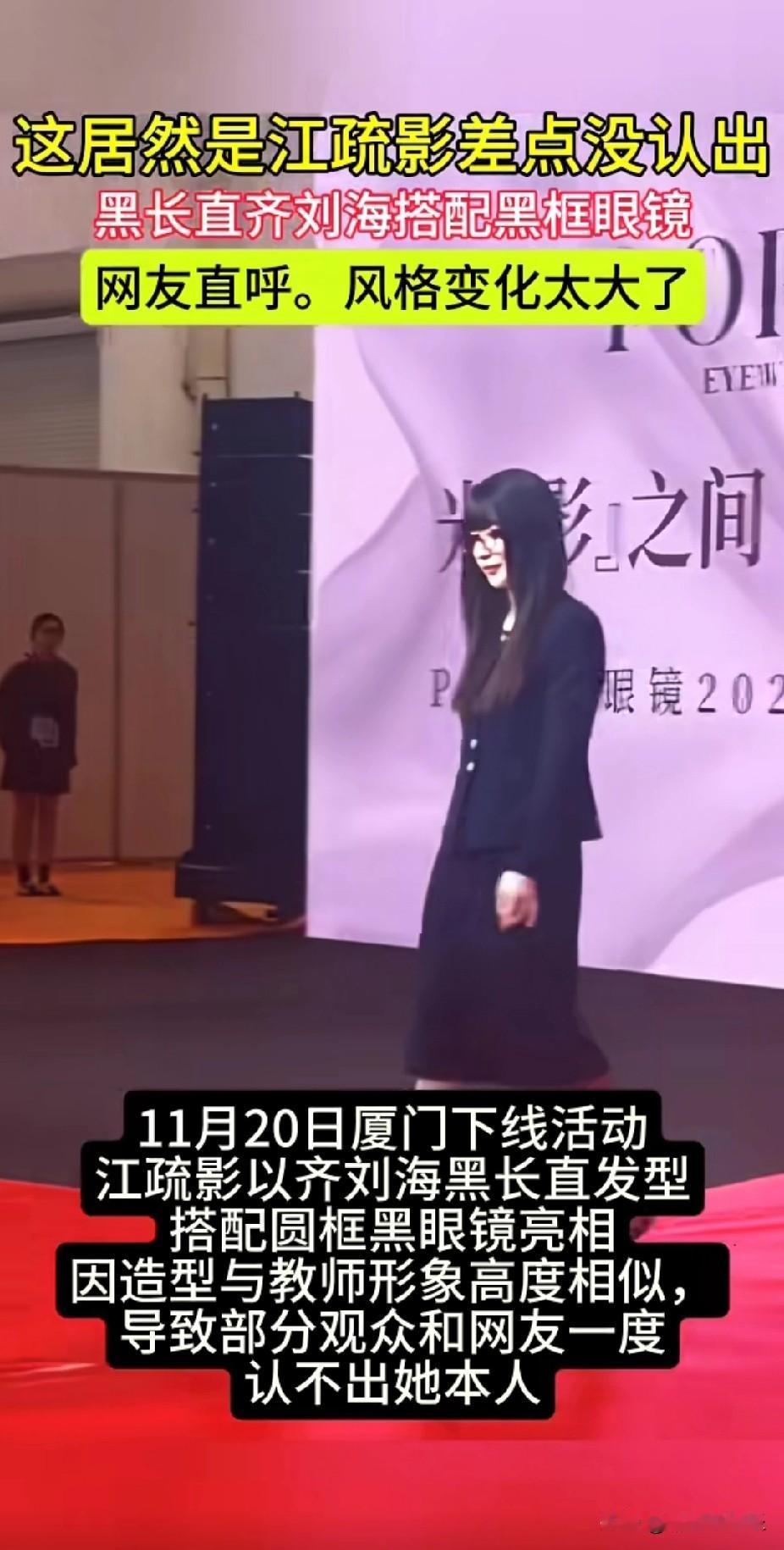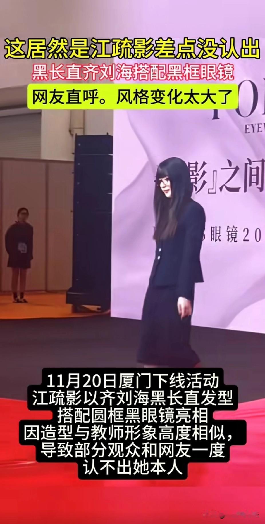 妈呀! 这居然是江疏影, 不看字幕真的一点没认不出, 这造型也太封印颜值了吧, 看起来普通低调极了,一点明显光环都没有了, 看来明星的妆造还真是重中之重啊, 江疏影也亲身证明了厚重的齐刘海披发真的显脸大, 即便她的脸原本很小巧,但被这发型一盖,总感觉脸颊两旁头发下还藏着很宽的脸庞, 那么问题来了,当初年轻的8090后们为什么都痴迷这种显胖的发型呢?