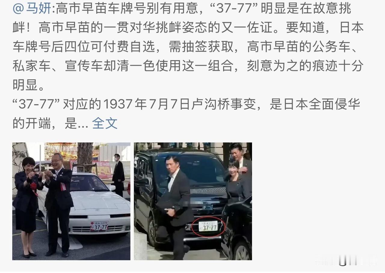 已经有很多人发现高市早苗的车牌号问题了,这能不是故意的? 这个人在言行举止中处处流露出对我们的敌意和“不甘心”,就像一些人说的,她只觉得输给了美国,所以她就是对我们不服气。 这个车牌就像是一种宣称,她还要卷土重来似的,不知道这次她的借口会不会比上次好点,我倒是希望她敢于以“士兵走丢”作为理由再来一次,各位觉得呢?