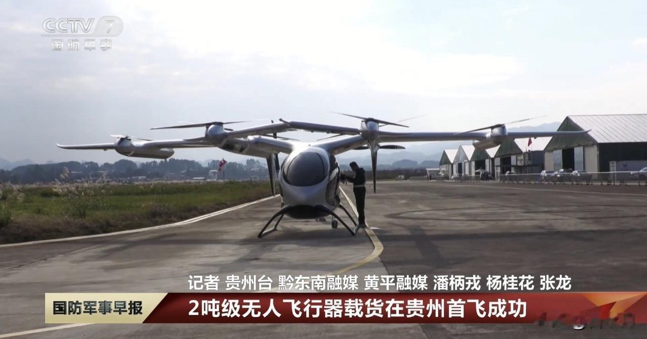 咱们的国产多旋翼电动载货无人机在贵州首飞成功了,造型还挺科幻的,而且看这个造型,