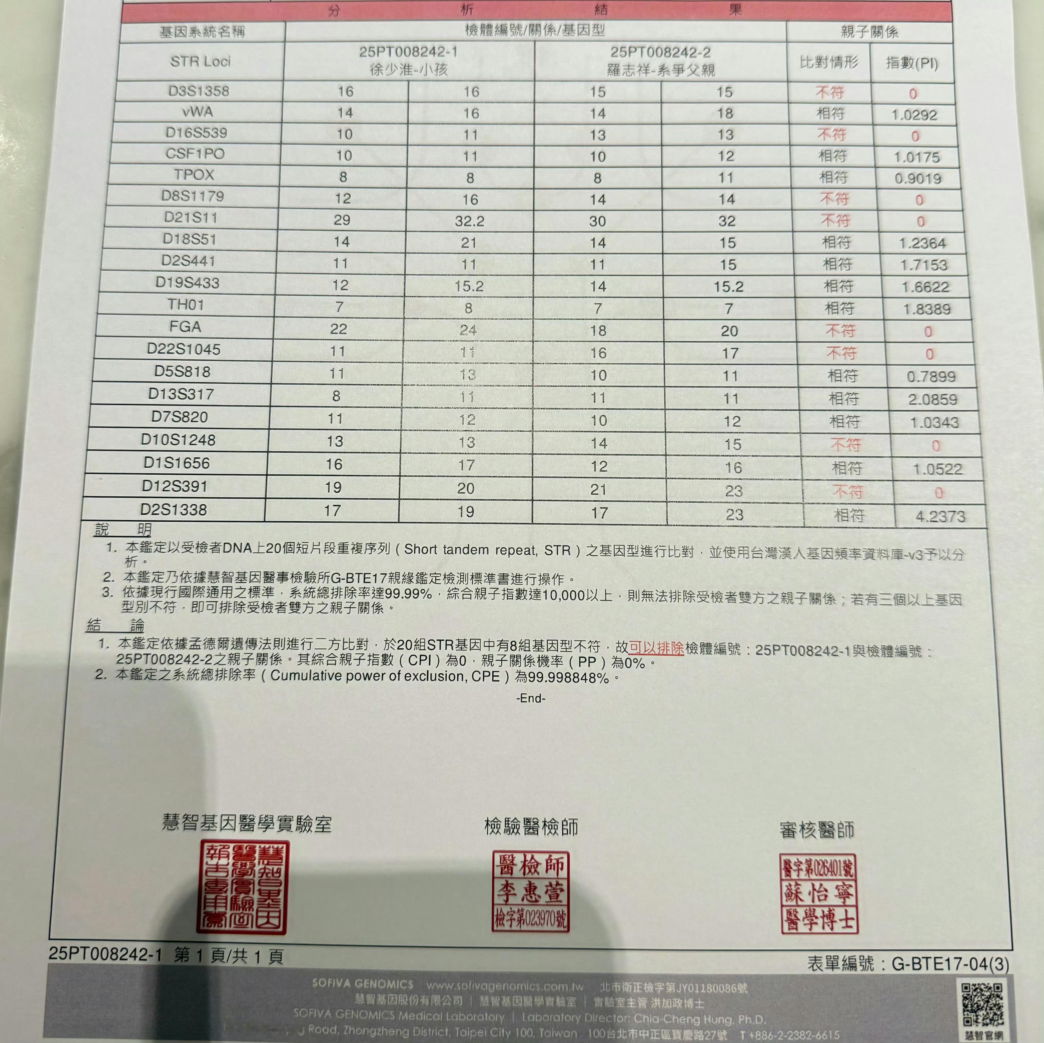 罗志祥和经纪人孩子亲子鉴定结果罗志祥亲子鉴定 罗志祥经纪人发了自己孩子和罗志祥的亲子鉴定结果,亲子关系概率0%。