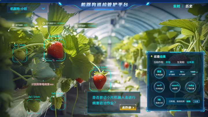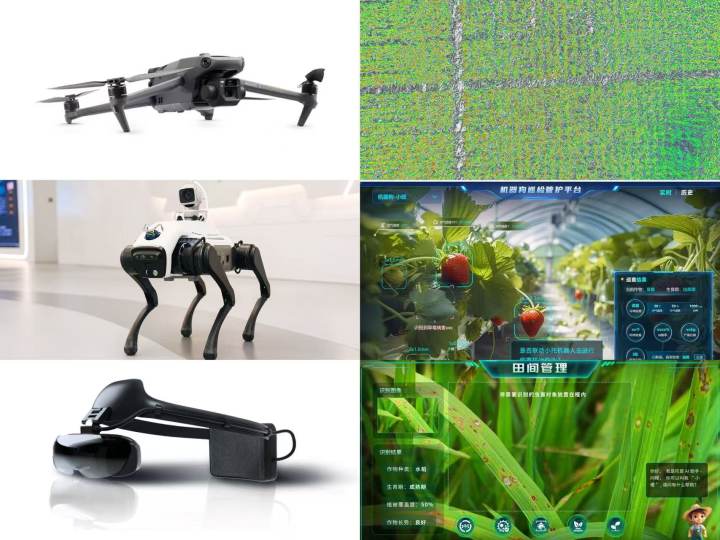 此外,机器狗巡检系统则能在水田中稳定行走,对水稻分蘖期、孕穗期等关键生育阶段进行监测,识别杂草生长情况与稻飞虱等病虫害;无人机低空遥感系统在果园、茶园等特色经济作物种植区,通过低空飞行获取冠层结构信息,辅助开展精准修剪与产量预估。