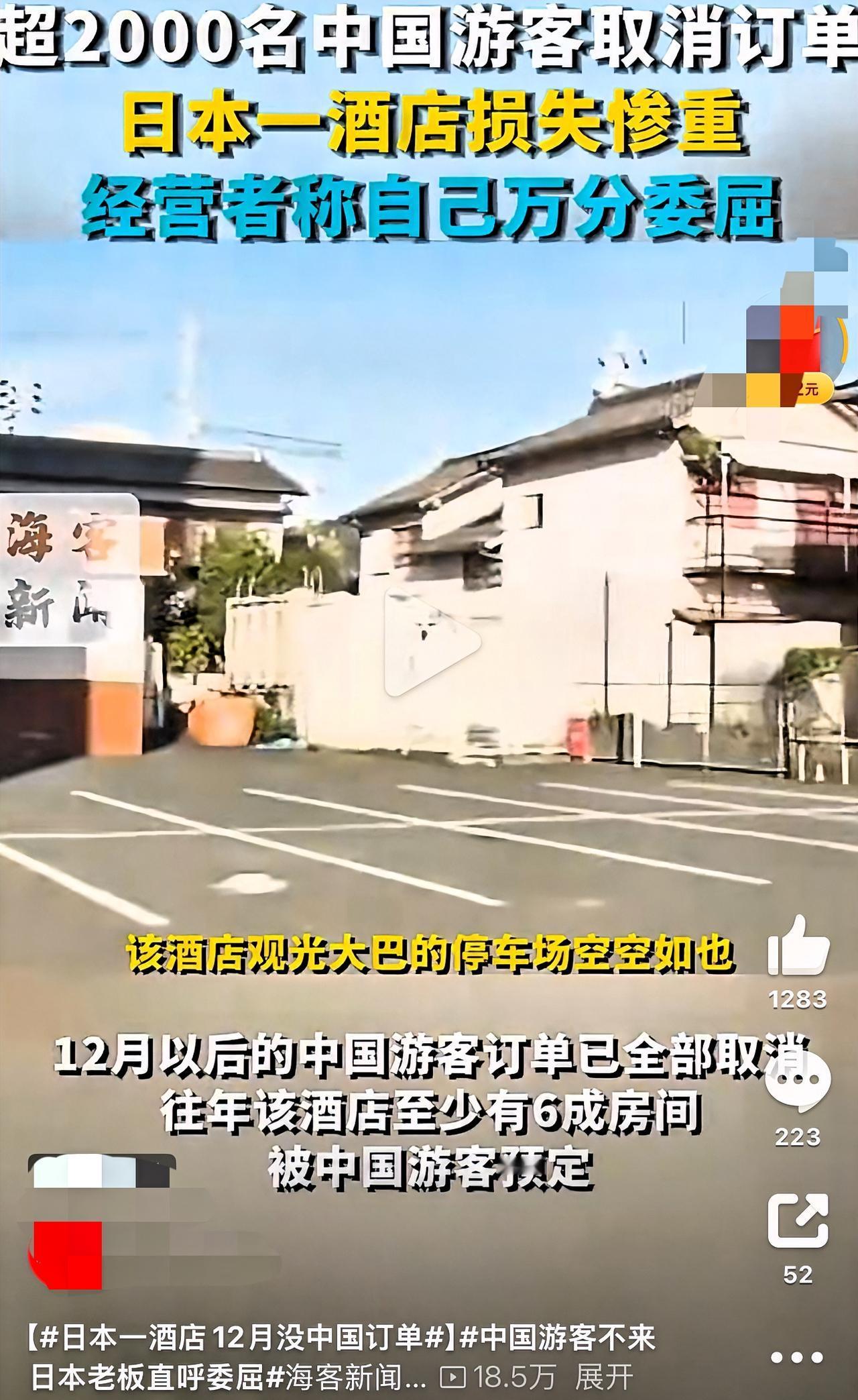 惊闻蒲郡酒店拉响“空房警报”!12月中国游客订单全数蒸发,往年年入1200万日元的旺季黄金档,如今竟沦为“零收入”寒冬——经营者含泪控诉:“2000人集体退单,2000万日元说没就没,这哪是取消预约?此乃釜底抽薪之策,硬生生断了我们的生计,令我们陷入举步维艰之困境。” 据朝日电视台11月25日深度报道,这家位于爱知县的酒店往年同期中国游客占比高达65%,单间日均收入超2万日元。如今却陷入“退单漩涡”:11月起每日收到数百封取消邮件,12月后所有房间预订被清零,直接经济损失飙至2000万日元,相当于普通职员十年工资。 为何集体“弃游”?业内揭秘三大诱因:其一,国际局势波动引发“安全焦虑”,部分游客担忧“歧视性政策”重演;其二,日元汇率波动叠加国内文旅复苏,海南、云南等目的地分流客源;其三,年轻群体偏好“深度游”,传统酒店模式难以匹配“自由行”新需求。更令人唏嘘的是,酒店员工透露:“有些客人退单时连理由都没写,只留下一句‘抱歉’。” 这场“退单风暴”背后,藏着无数个体的困境:酒店保洁阿姨担心失业,周边餐馆老板发愁食材积压,甚至当地出租车司机都感叹“接不到中国客”。正如网友所言:“这不是简单的数字,而是2000个家庭的生计,是中日民间交往的温度计。” 当“退单潮”遇上“寒冬季”,我们该如何重建信任?