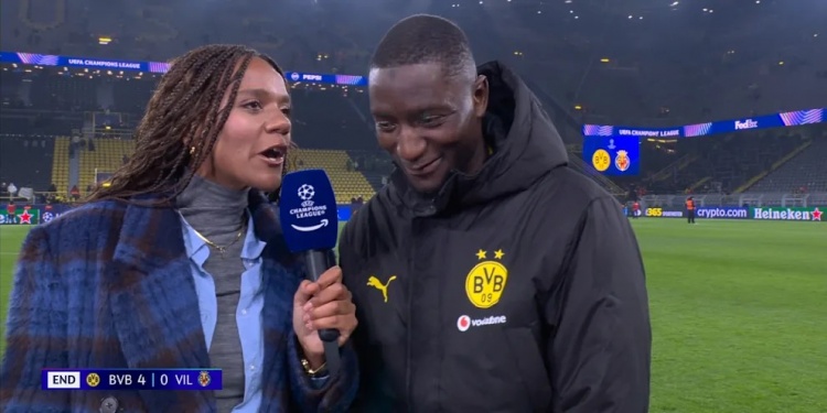 在多特4-0战胜比利亚雷亚尔之后,吉拉西接受亚马逊电视台记者卡亚娜·弗里曼的采访。当记者用法语提问前两个问题时,这位几内亚射手也以法语作答。(注:几内亚官方语言是法语)