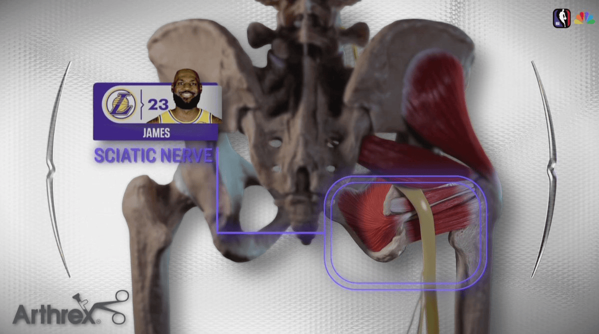 隔这呢!NBC在直播中展示詹姆斯伤势坐骨神经的位置