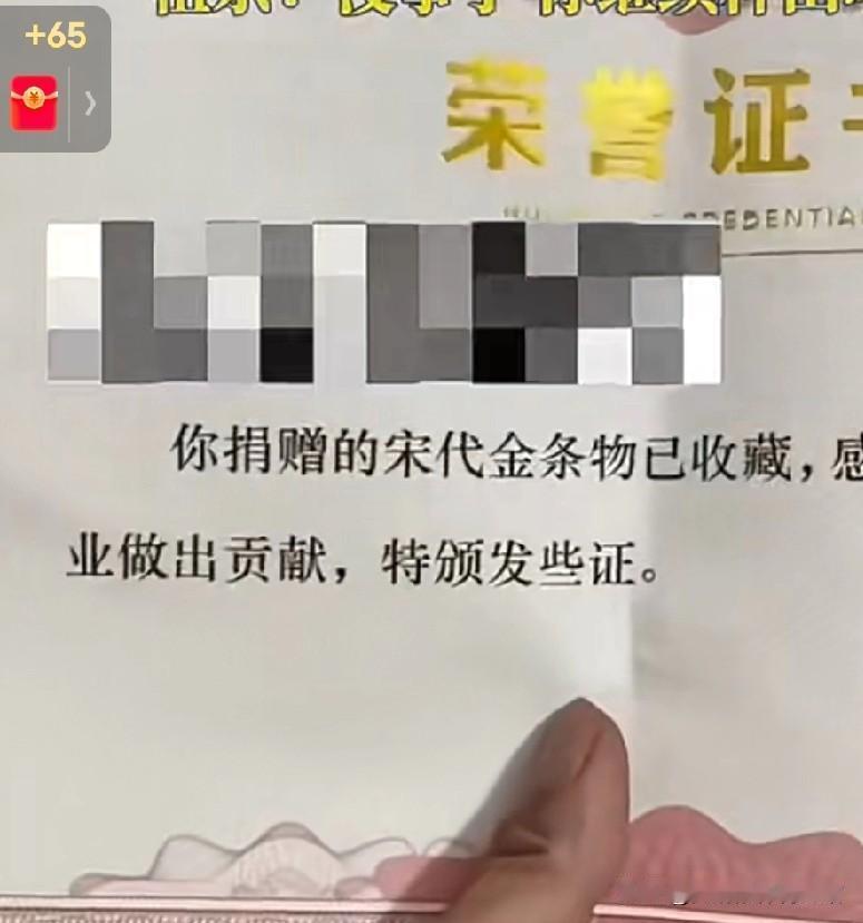 男子在户外挖到宋代的一根金条, 将它上交给了国家。拿回来了一张证书 祖宗:没事了