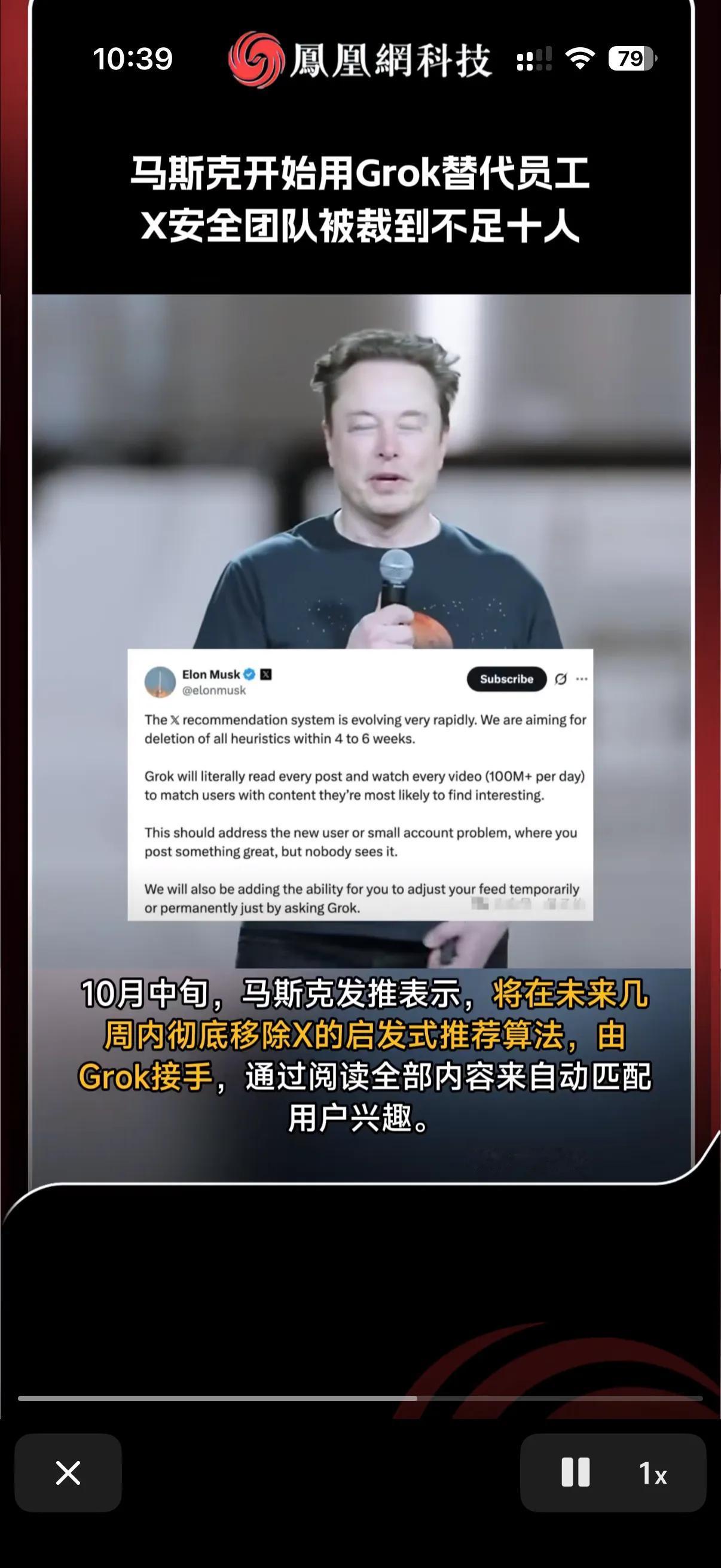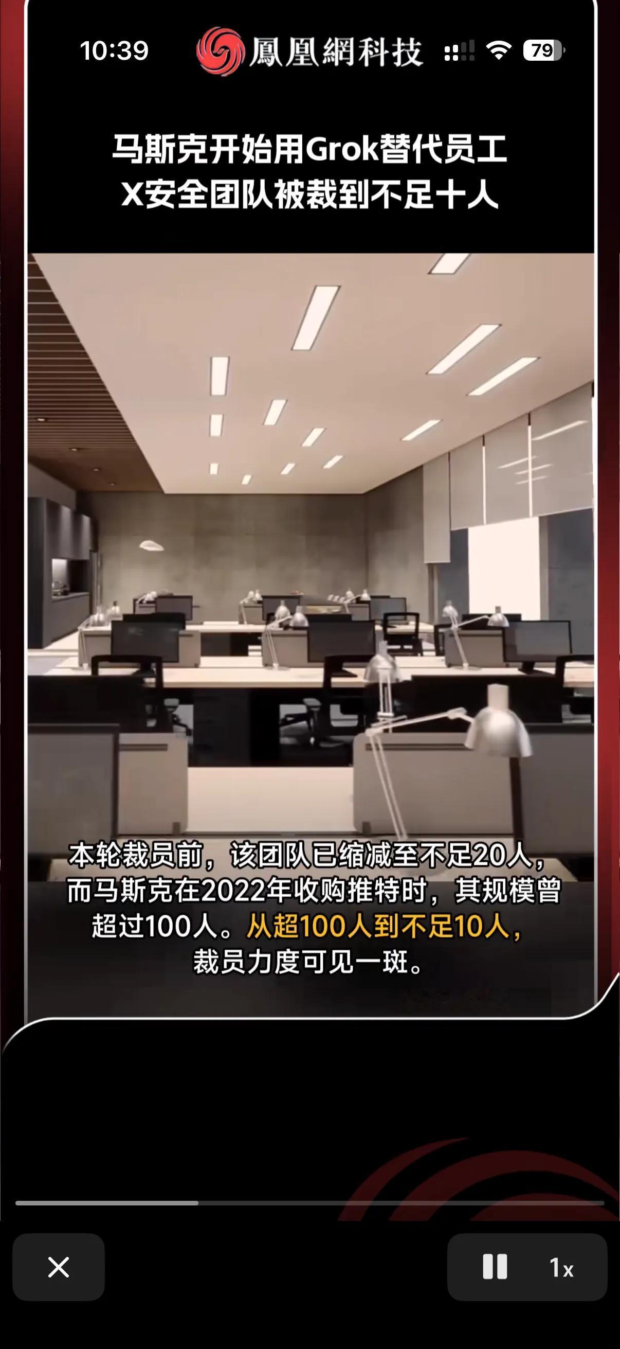 马斯克大量裁员,改用人工智能! 谁能想到,人工智能大量应用后,第一批受害者居然是这些网络工程师! 日前有媒体报道,马斯克旗下的x已经开始大量裁员,其中的安全团队已经被裁到不足十人了! 马斯克开始用grok替代大量员工! 估计当初开发grok的这些员工完全没想到自己会有这么一天吧!可以说ai已经完全可以取代这些算法工程师了,反而是最基础的体力劳动者不会被人工智能取代了! 这一消息让很多网络从业者人人自危了!