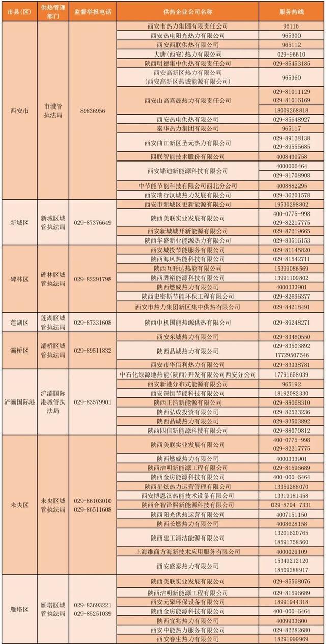 现将西安市集中供热部门监督电话