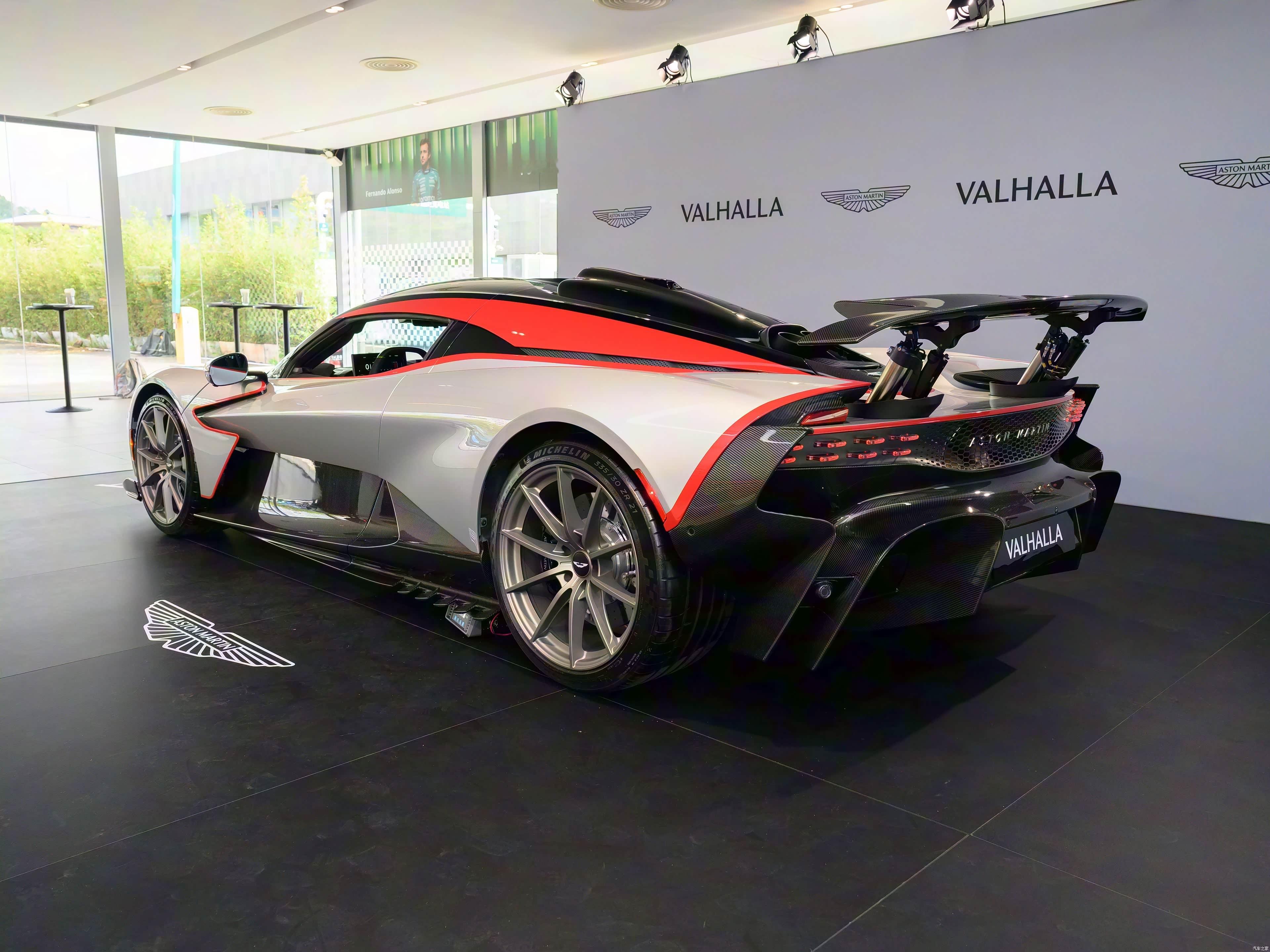 阿斯顿·马丁Valhalla量产版实车国内亮相全新的4.0升V8双涡轮增压发动机+三台电机综合功率1079马力,品牌首款中置发动机超跑。国内售价为1068.8万起,全球限量999台纯电模式最高时速达130km/h,纯电续航14km0-100km/h加速时间预计为2.5秒,电子限速350km/h阿斯顿马丁valhalla豪车超跑老纪侃车