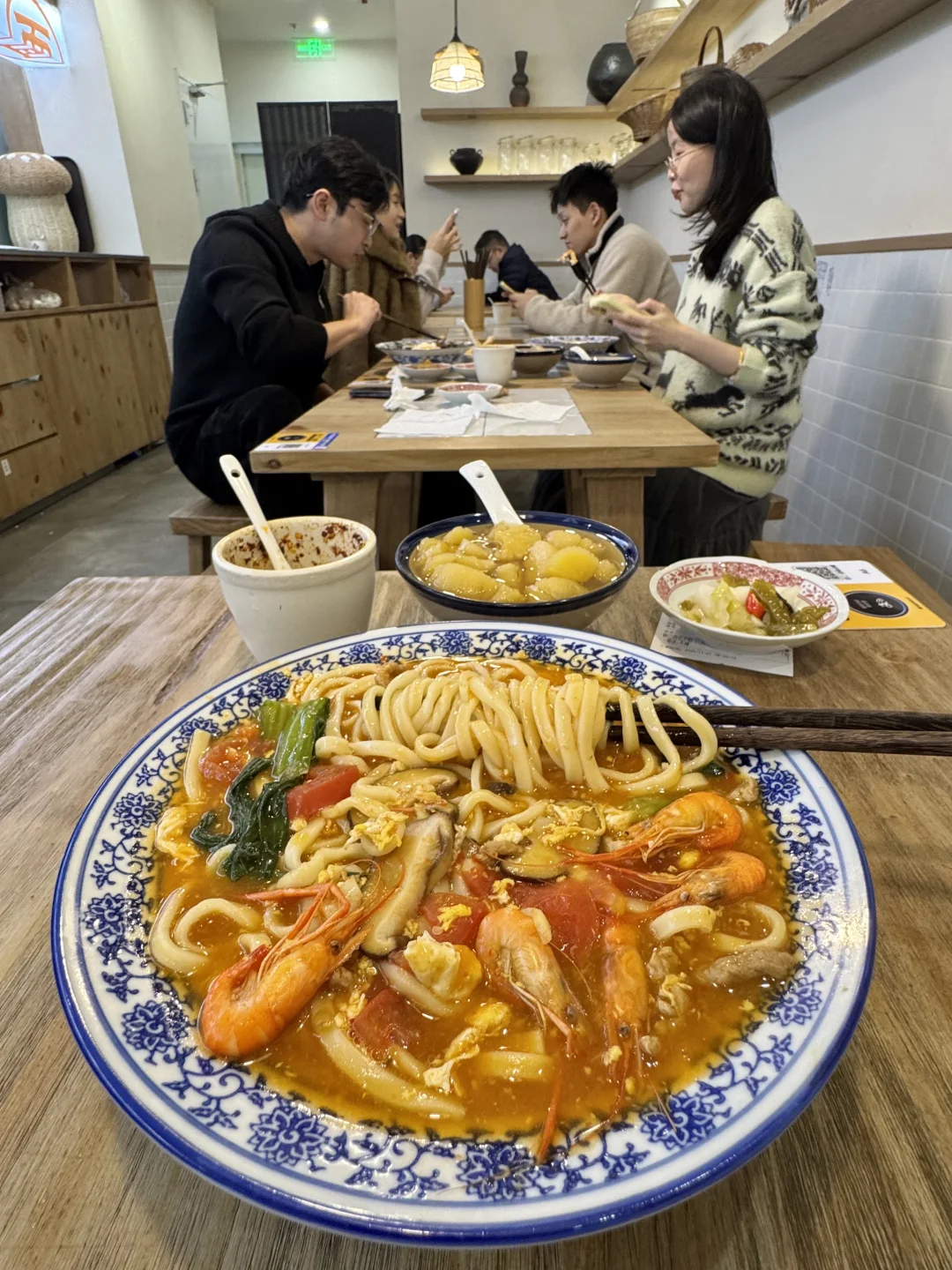 炒年糕黏糊糊的🤤糯糯叽叽的好好吃~ 辣汤年糕香辣Q弹!!锅巴炒粉锅巴是脆脆不油的那种,嘎嘎香!! 很爱吃他们家的三鲜汤面🍜汤底浓郁好鲜!!好吃到把汤都喝完的程度😋