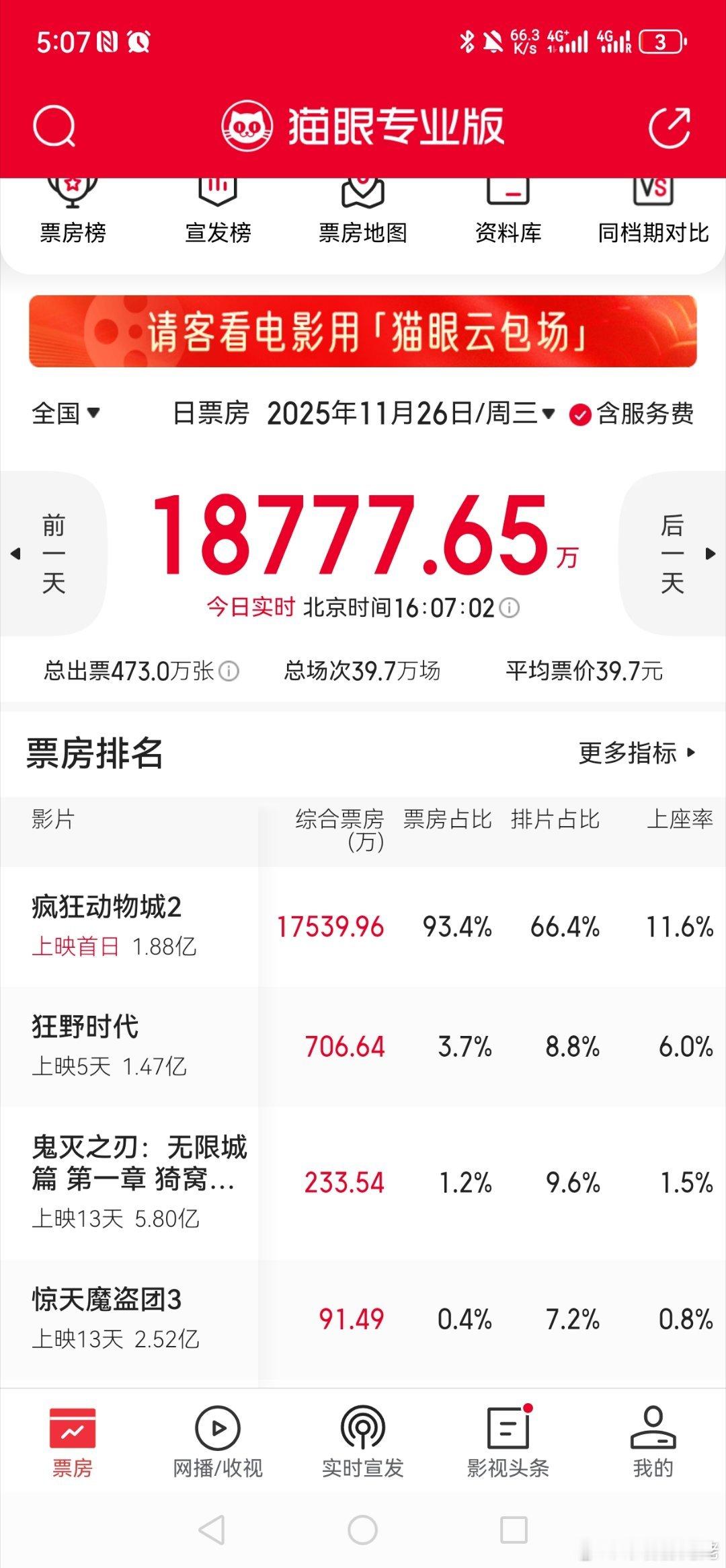 疯狂动物城2票房预测25亿+,66%的排片,票房占比93.4%
