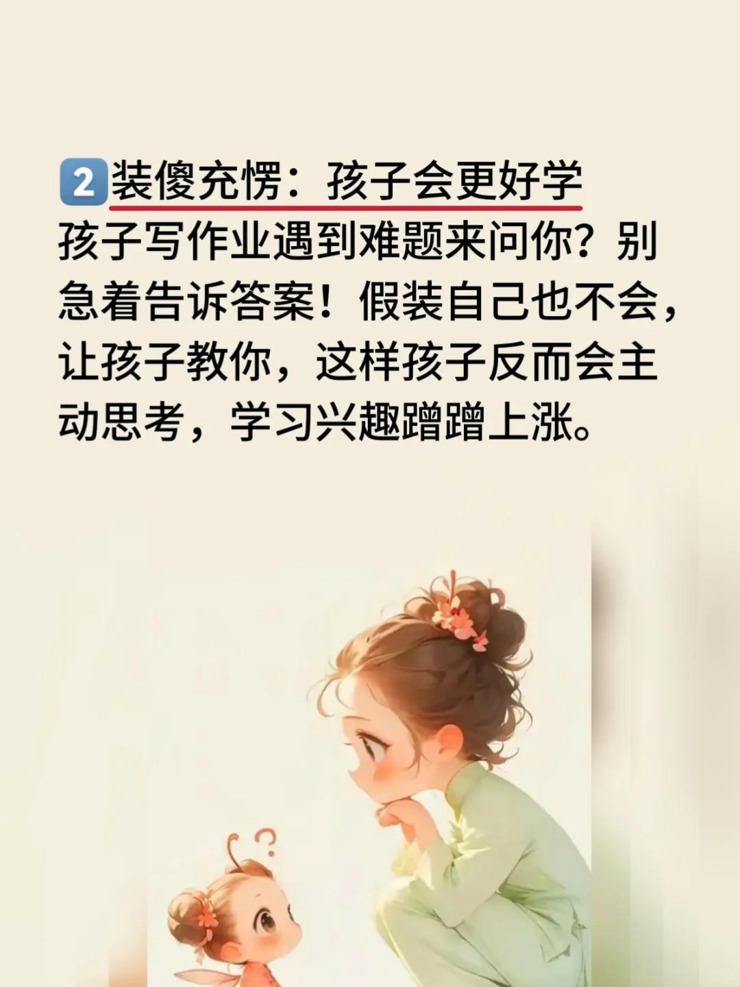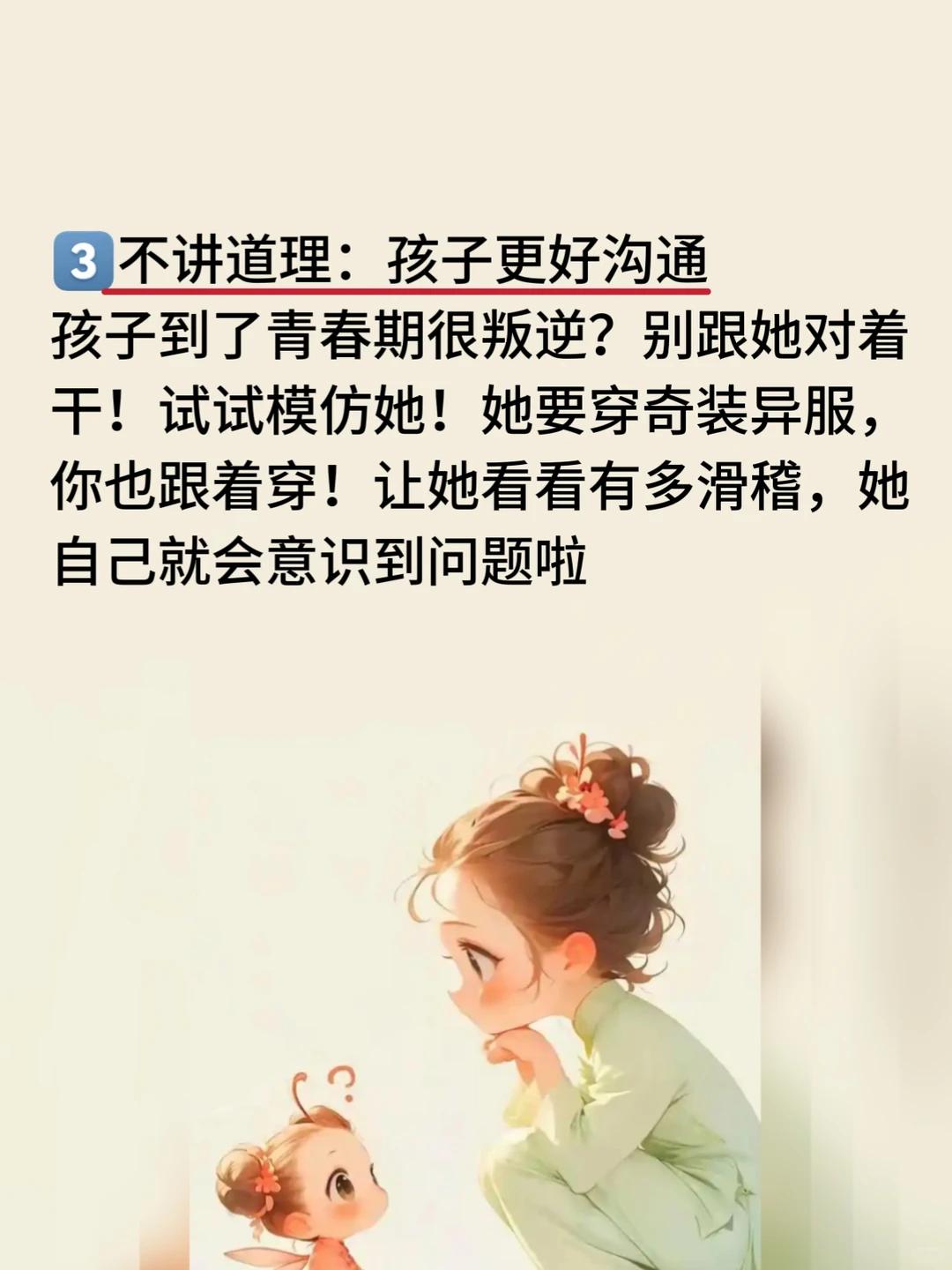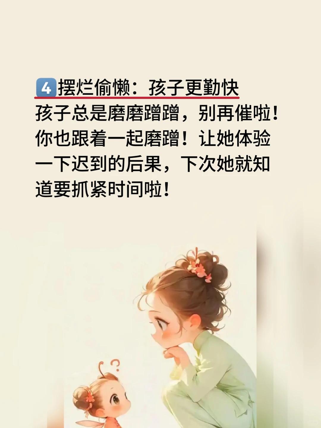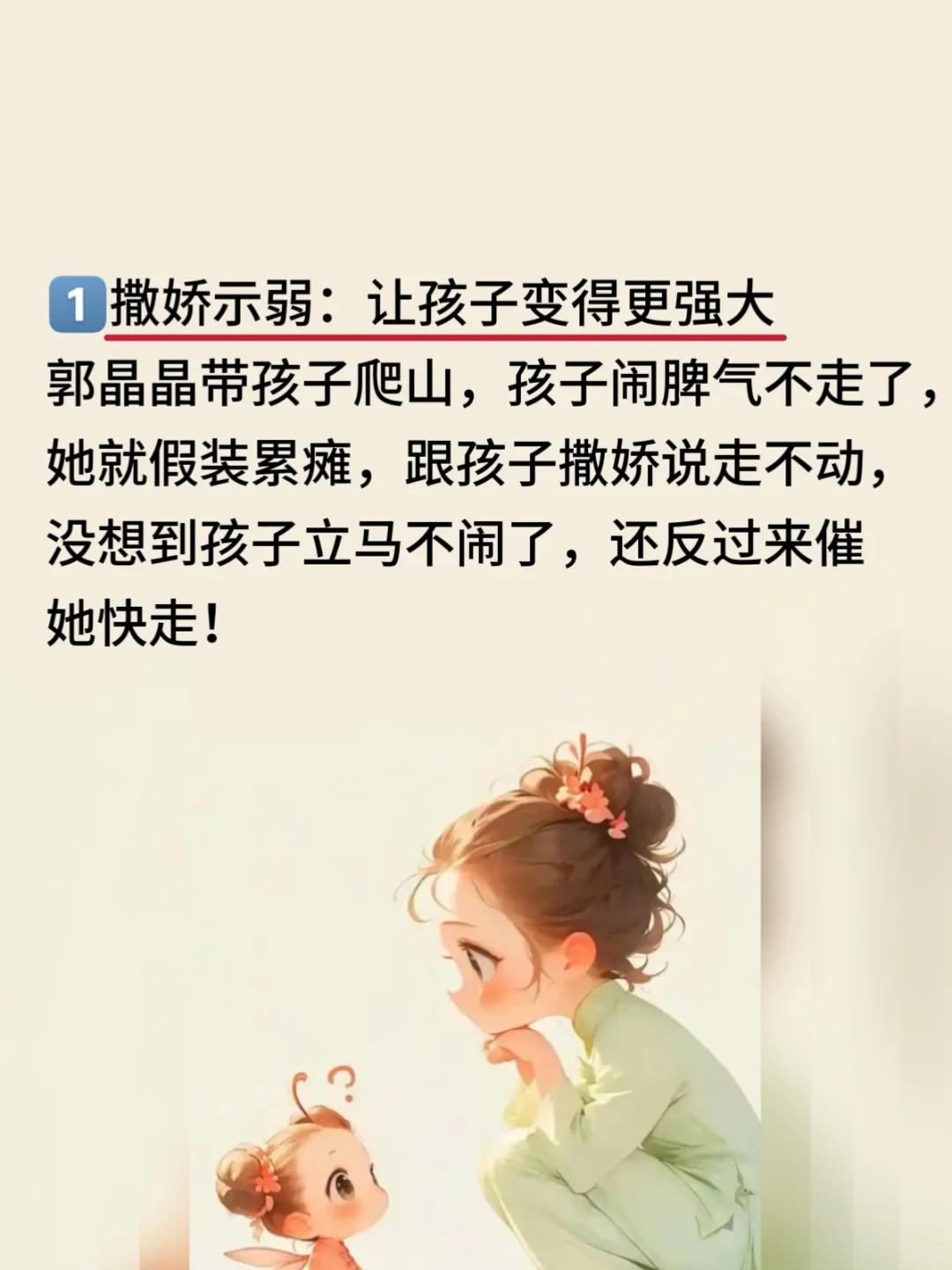 什么叫“反向式育儿”? 你听说过“反向式育儿”吗?这可不是传统的说教和强迫,而是用逆向思维来教育孩子。⬇️ 1⃣撒娇示弱:让孩子变得更强大 郭晶晶带孩子爬山,孩子闹脾气不走了,她就假装累瘫,跟孩子撒娇说走不动了,没想到孩子立马不闹了,还反过来催她快走! 2⃣装傻充愣:孩子会更好学 孩子写作业遇到难题来问你?别急着告诉答案!要假装自己也不会,让孩子来教你!这样孩子反而会主动思考,学习兴趣蹭蹭上涨。 3⃣不讲道理:孩子更好沟通 孩子到了青春期很叛逆?别跟她对着干!试试模仿她!她要穿奇装异服,你也跟着穿!让她看看有多滑稽,她自己就会意识到问题啦🤭! 4⃣摆烂偷懒:孩子更勤快 孩子总是磨磨蹭蹭?别再催啦!你也跟着一起磨蹭!让她体验一下迟到的后果,下次她就知道要抓紧时间啦! ✅“反向育儿”的核心其实就是:换位思考,引导孩子自己解决问题!与其苦口婆心地说教,不如让孩子“感同身受”😉! 🎈今日碎碎念: 我和女儿双双流感,浑身酸痛,头疼发热,感觉比新冠还难受😣。以前孩子生病都是我照顾,她也很享受我的照料,体谅不了我的辛苦。这次我跟女儿说,妈妈和你一样难受,咱们要相互照顾,坚强勇敢些,一起打败病魔🦠。女儿退烧后,会主动给我煮面、喂药、洗脚,一下子懂事了好多。看到女儿难受的样子,我其实很心疼,但是我必须培养她的坚强和自立,学会换位思考。以前孩子一个人在家会打电话问我,妈妈,你什么时候下班呀,我快饿死啦。今天我下班之前打电话给她,她说:”妈妈,我已经自己煮馄饨吃了,你下班回来路上注意安全,我感觉好很多了。……