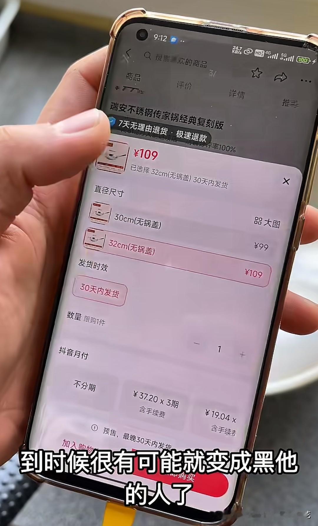 注意看,“瑞安传家锅”是没有运费险的,有些地区还不包邮,价格高达百元的铁锅到底值不值,目前吐槽的一批用户集中在了锅太小、价格贵等问题上,好不好用需要时间证明,但货肯定是退不了的。 也就是说,第一批花百元购买铁锅的人如果发现锅没有想象中的那么完美,会大失所望,会选择退货,同时也会转成黑粉。这也不难理解有人会拿到二手平台转让了,之所以高价转售是因为很多人没买到,供不应求,迫切想买的人自然会加点钱购买了,一旦发现锅不好用,这批人就成了那波黑的最狠的人了。 铁锅好不好用,一看原料,二看工艺,最后看价格,三者都满意才能买到称心如意的好锅。如果只是盲目跟风,即便再好的锅,发现不适合自己,只能花钱买教训。