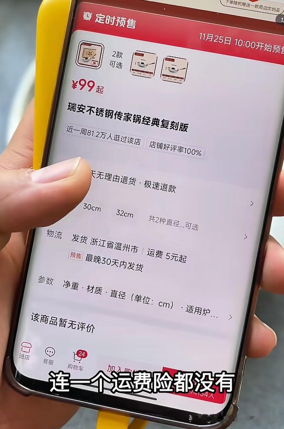 注意看,“瑞安传家锅”是没有运费险的,有些地区还不包邮,价格高达百元的铁锅到底值