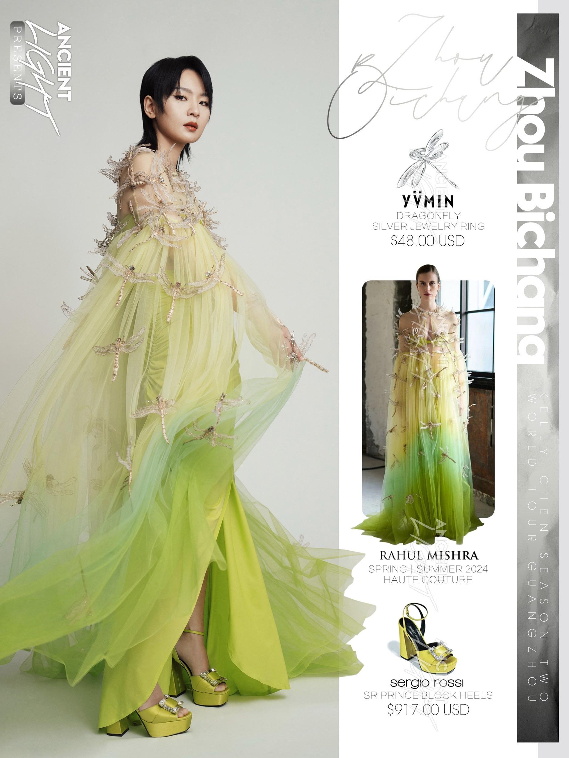 周笔畅·开启「自由」浸染的悸动,袅袅云端旖旎 周笔畅身着Rahul Mishra SPRING SUMMER 2024 HAUTE COUTURE,佩戴YÜMIN DRAGONFLY SILVER JEWELRY,鞋履为sergio rossi SR PRINCE BLOCK HEELS。轻盈纱感,朦胧中的冬日一抹绿色对眼睛很友好。 👗 GOWN:Rahul Mishra 🌟 📿 💍JEWELRY :YÜMIN 👠FOOTWEAR: sergio rossi