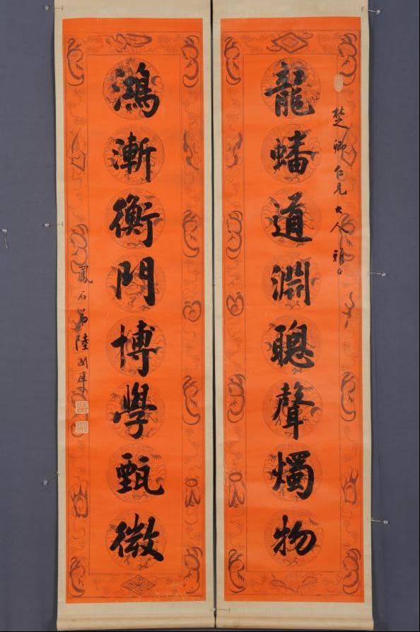 济南市博物馆从馆藏清代楹联书法作品中考证释义,甄选楹联、文房杂项等相关展品近80件与观众见面,另有章丘区博物馆文房杂项文物一同展出。