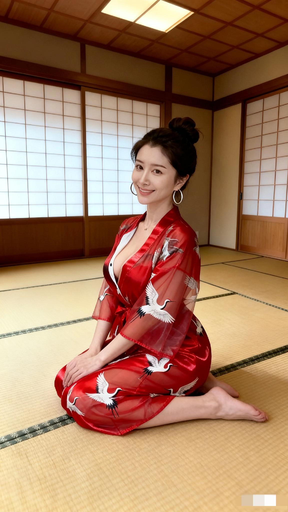 和服美人坐榻榻米,优雅气质扑面来!