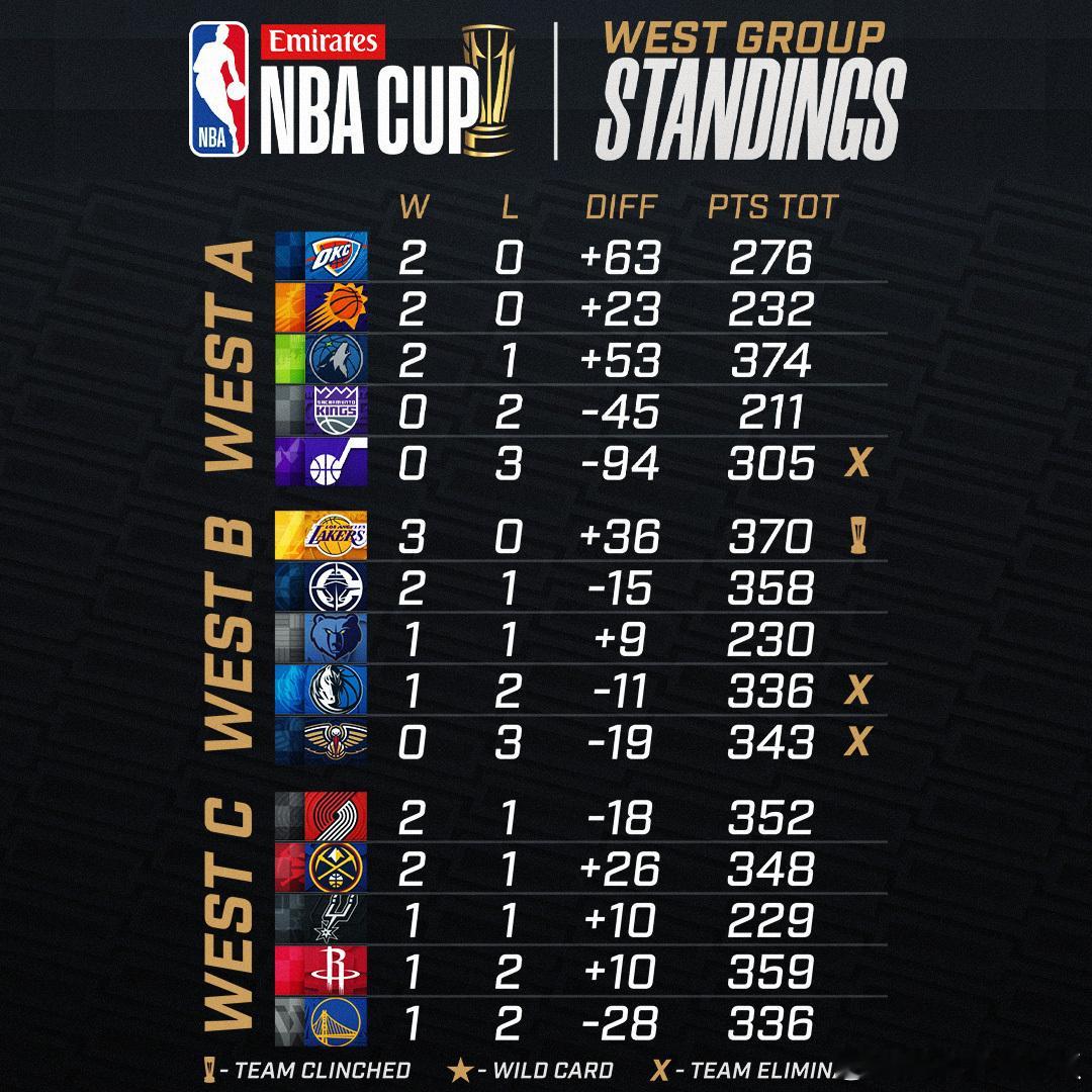 东西部目前排名📈奇才取得赛季第2胜;湖人重回西部第2!杯赛目前排名: 湖人成为西部第一支晋级淘汰赛的球队,净胜分+36👀周六杯赛: 独行侠vs湖人新赛季篮不住