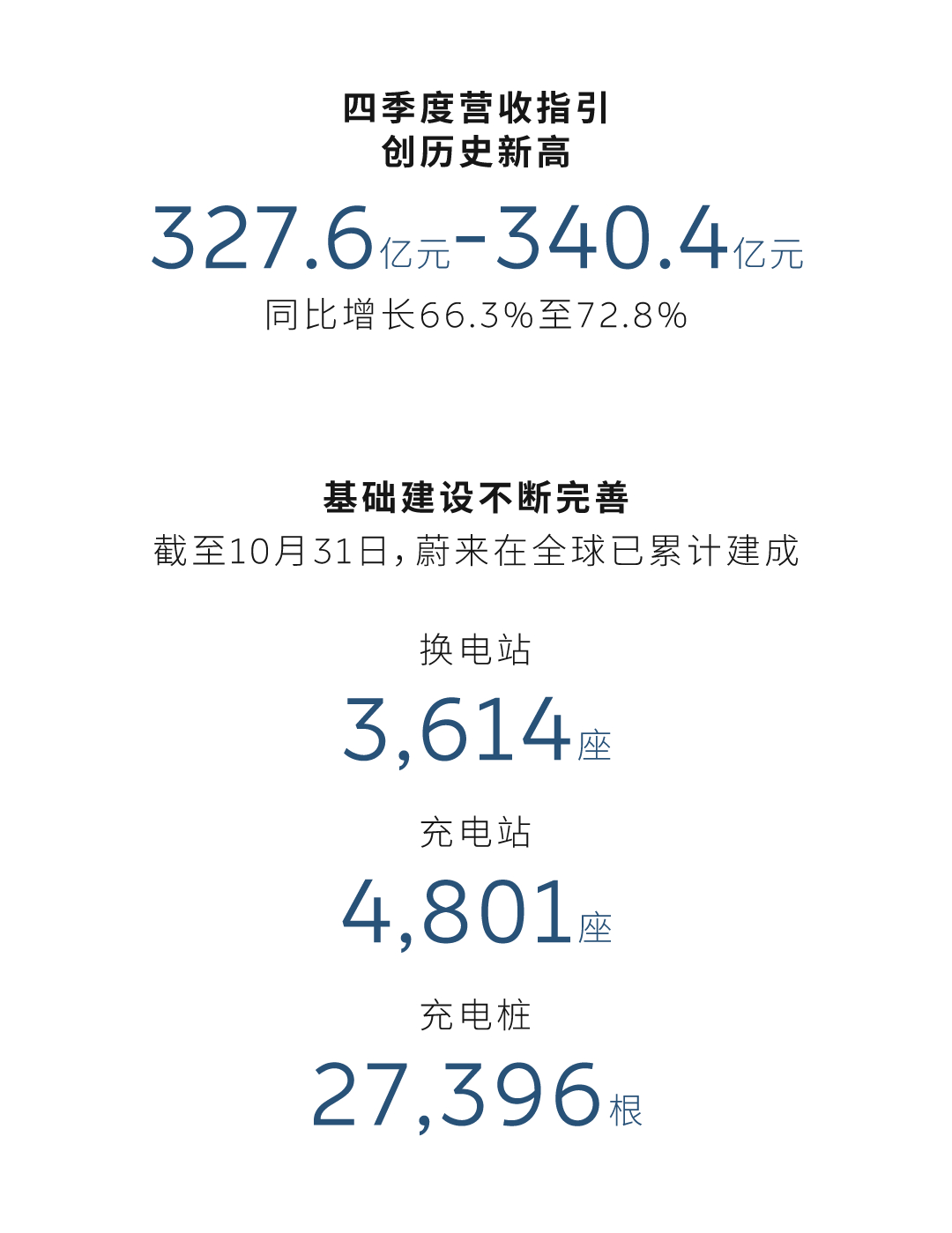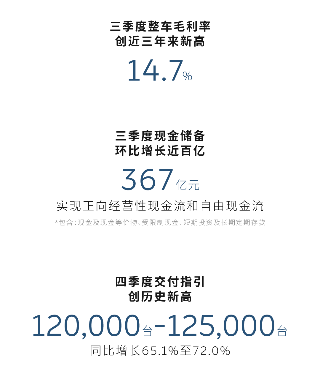 建议各位看完这18张图,这是蔚来第三季度的财报解析。可以看到三季度交付量达到了惊人的87071台,营收是217.9亿,最重要的是综合毛利率来到了13.9%而整车毛利则是14.9%。这些数字,我是投资者会很开心,我作为用户也非常开心。蔚来也是好起来了啊!而报表后段调低了四季度的交付指引,一来控制一下大家的预期,二来保留一些惊喜,让子弹飞一会儿。蔚来目前全国3614座换电站,数量继续增加,换电远远超过了九千万次,这些都是衡量企业动力的指标,猛得一批。后面的图片,则是进一步加强市场信心的重要新闻,每一个都是重磅且影响深远的。蔚来,加电!期待四季度我们一起喝一杯!蔚来大V聊车
