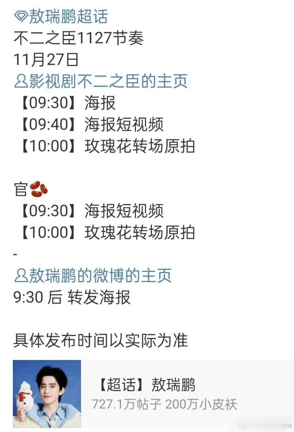 敖瑞鹏《不二之臣》明天的物料🈶海报➕海报短视频➕玫瑰花转场原拍,期待🥰