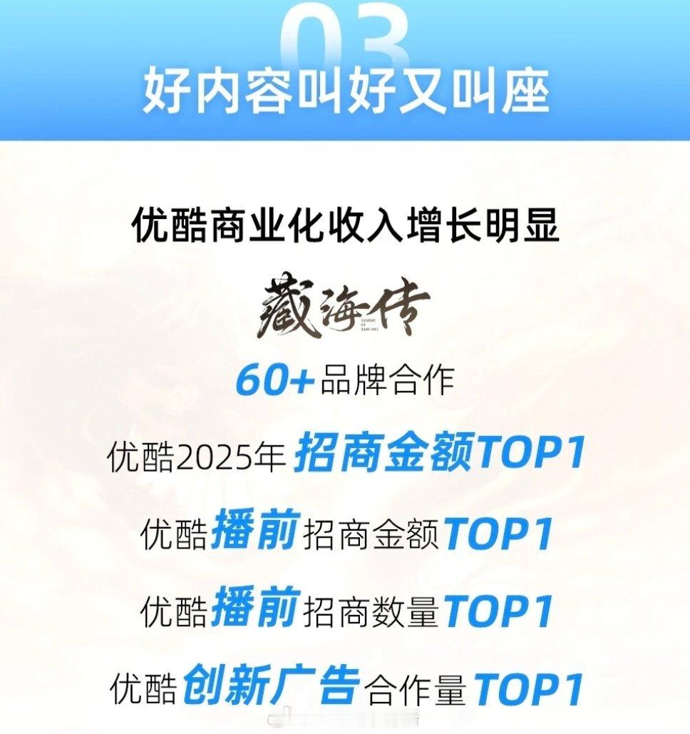 虎鲸文娱官方发布优酷财报多次提到藏海传,云合播放+商业化收入都是位列酷的首位