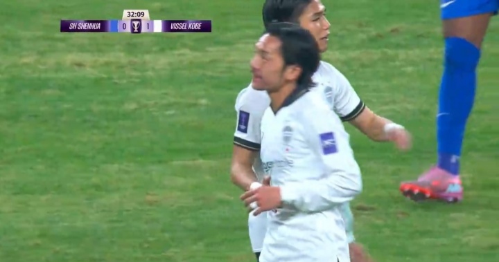 申花第30分钟先丢一球,VAR核实不越位,申花0-1落后神户