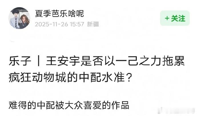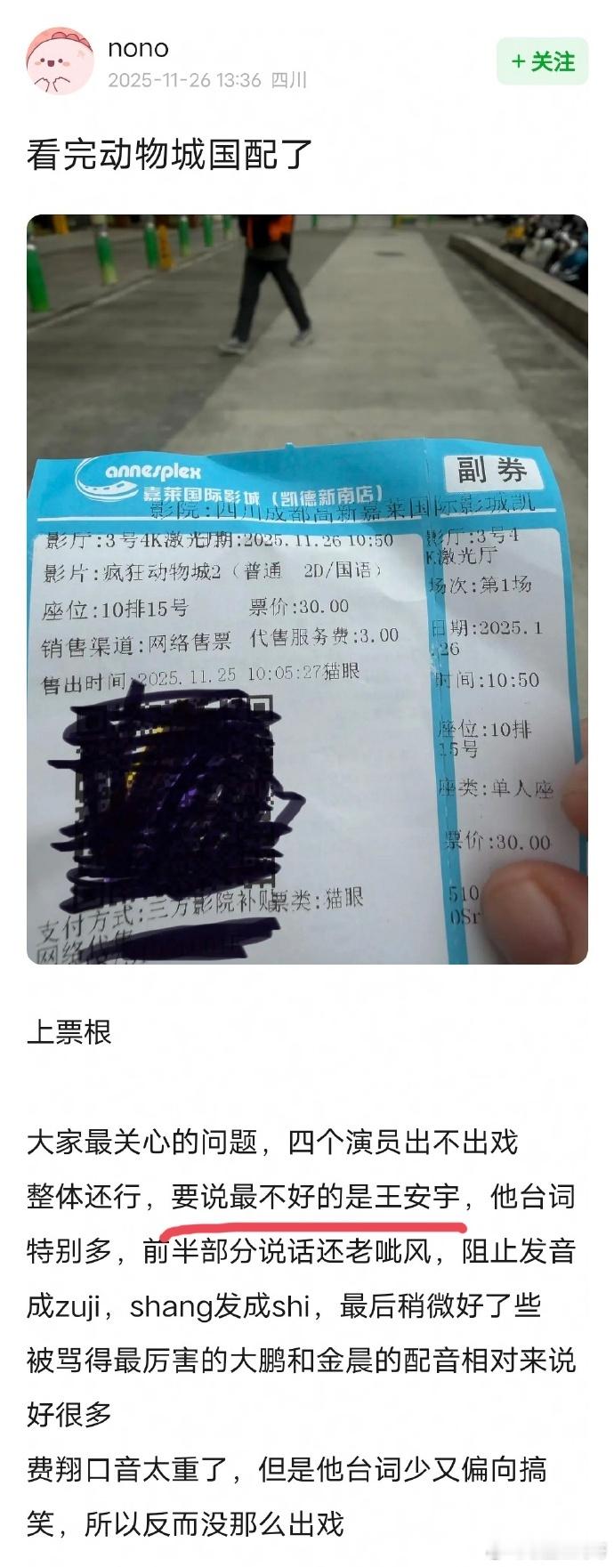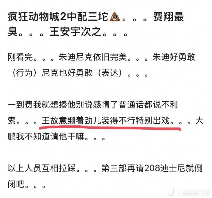 疯狂动物城2里面的中配被吐槽了,尤其是王安宇的