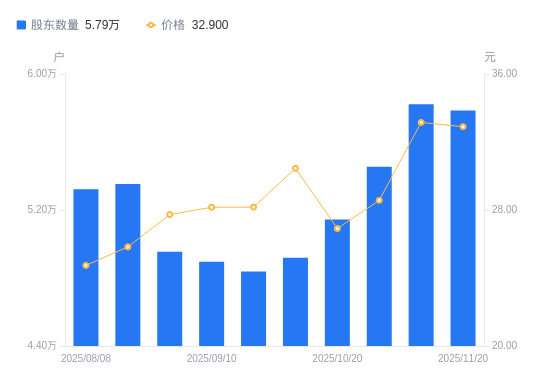 日期A股户数(户)流通A股户均持股数(股)户均持股市值(万元)2025-10-205144421445.7757.712025-10-104919622425.7368.292025-09-304838922799.7364.232025-09-104895222537.5063.472025-08-294954322268.6561.752025-08-205352520611.9753.242025-08-085321920730.4951.292025-07-315427420327.5250.352025-07-185981218445.3943.842025-06-306676516524.4733.92
